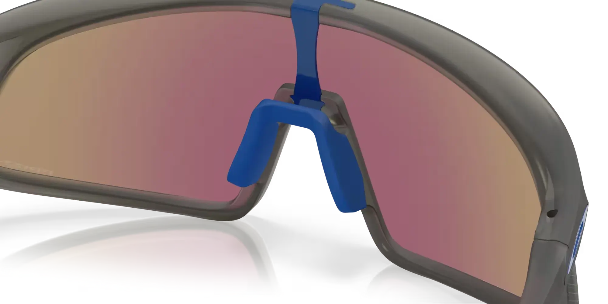 Unobtainium®Het OAKLEY drie-punten-design zorgt ervoor dat het montuur het gezicht alleen op de neusbrug en de slapen raakt. Hierdoor biedt de bril comfort, performance en een nauwkeurige uitlijning van de lenzen. De montuurgeometrie zorgt voor een maximaal perifeer zichtveld.