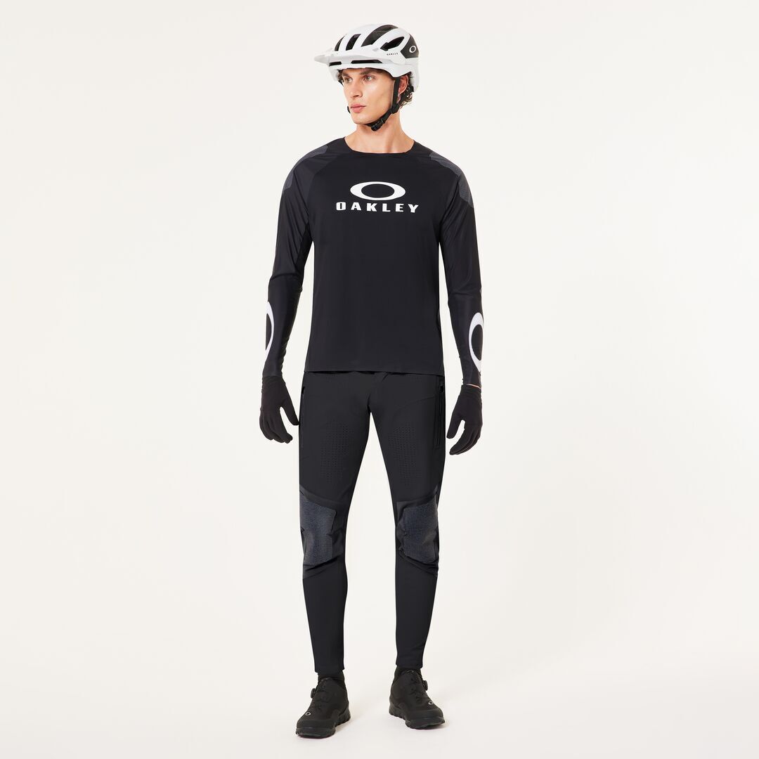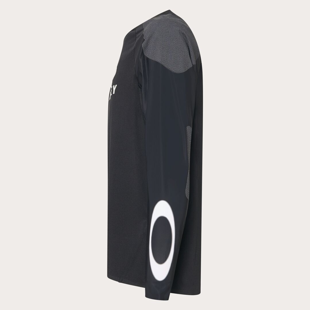 Dit gestroomlijnde fietsshirt met lange mouwen is perfect voor zowel bloedstollende downhill-trails als zware beklimmingen. Gemaakt van een vochtafvoerende en sneldrogende mix van polyester en elastaan om je fris en alert te houden. De Cordura®-panelen op de schouders en ellebogen garanderen extra ondersteuning en bescherming tegen slijtage, wat essentieel is op ruige paden. Mesh-panelen onder de armen zorgen voor extra, gerichte koeling. Een 3D Oakley Bark-logo op de borst en een opvallend gesublimeerd Oakley Ellipse-logo op de polsen onderstrepen je stijl en prestaties.