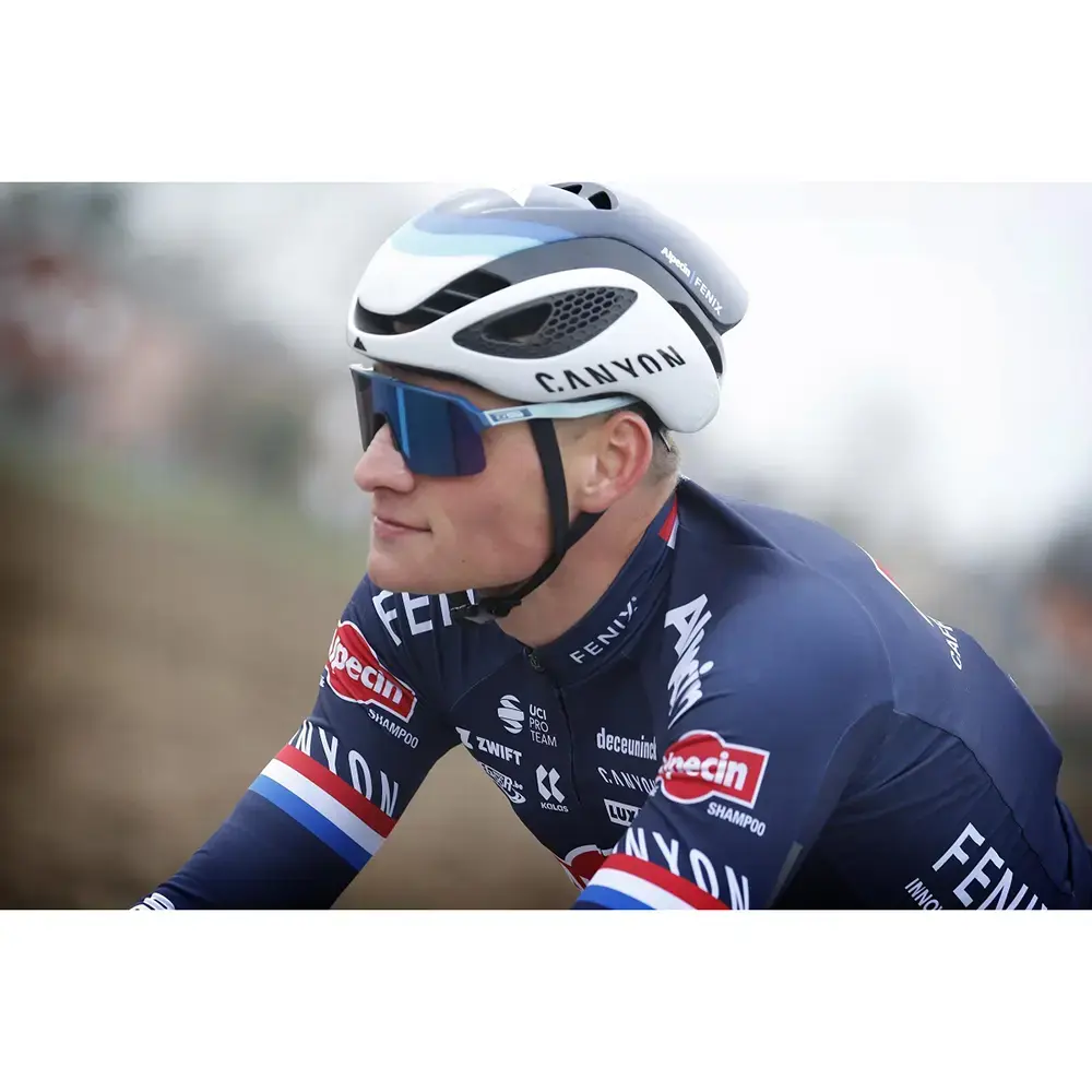 De Oakley Sutro Lite Sport Zonnebril is er nu met Mathieu van der Poel signature! Hiermee eert Oakley onze nationale trots die de Sutro Lite in vele disciplines draagt. Het prachtige Matte Poseidon Gloss Splatter frame met custom Oakley icoon maakt deze bril extra uniek. De Sutro Lite is een semi-randloze zonnebril voor een groter gezichtsveld. Het model is hetzelfde als de Oakley Sutro-collectie, maar heeft een randloos frame aan de onderkant. Dit geeft ten eerste een extra sportieve look, maar ook een ruimer gezichtsveld. De bril is ontworpen voor het dagelijks leven van ‘urban’-fietsers, maar is ook geschikt voor sportfietsers. Het O Matter™ materiaal van het frame en het Unobtainium® materiaal van de neusstukken zorgen voor een geweldige pasvorm en een hoog draagcomfort. De PRIZM Road Jade Lens heeft een lichtdoorlatendheid van 15% en is geschikt voor fel licht.