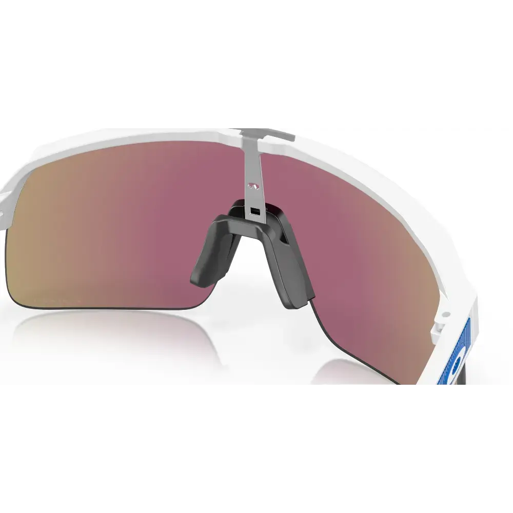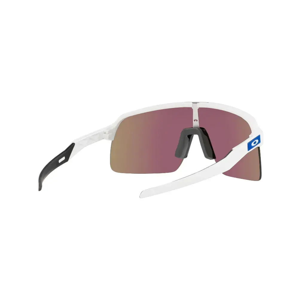 De Oakley Sutro Lite Sport Zonnebril is een semi-randloze zonnebril voor een groter gezichtsveld. Het model is hetzelfde als de Oakley Sutro-collectie, maar heeft een randloos frame aan de onderkant. Dit geeft ten eerste een extra sportieve look, maar ook een ruimer gezichtsveld. De bril is ontworpen voor het dagelijks leven van ‘urban’-fietsers, maar is ook geschikt voor sportfietsers. Het O Matter™ materiaal van het frame en het Unobtainium® materiaal van de neusstukken zorgen voor een geweldige pasvorm en een hoog draagcomfort. De PRIZM Sapphire Lens heeft een lichtdoorlatendheid van 12% en is geschikt voor fel licht.