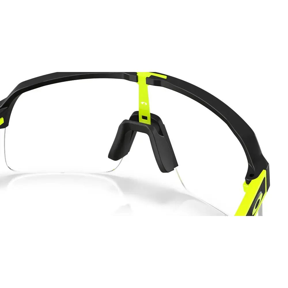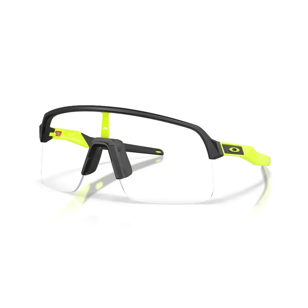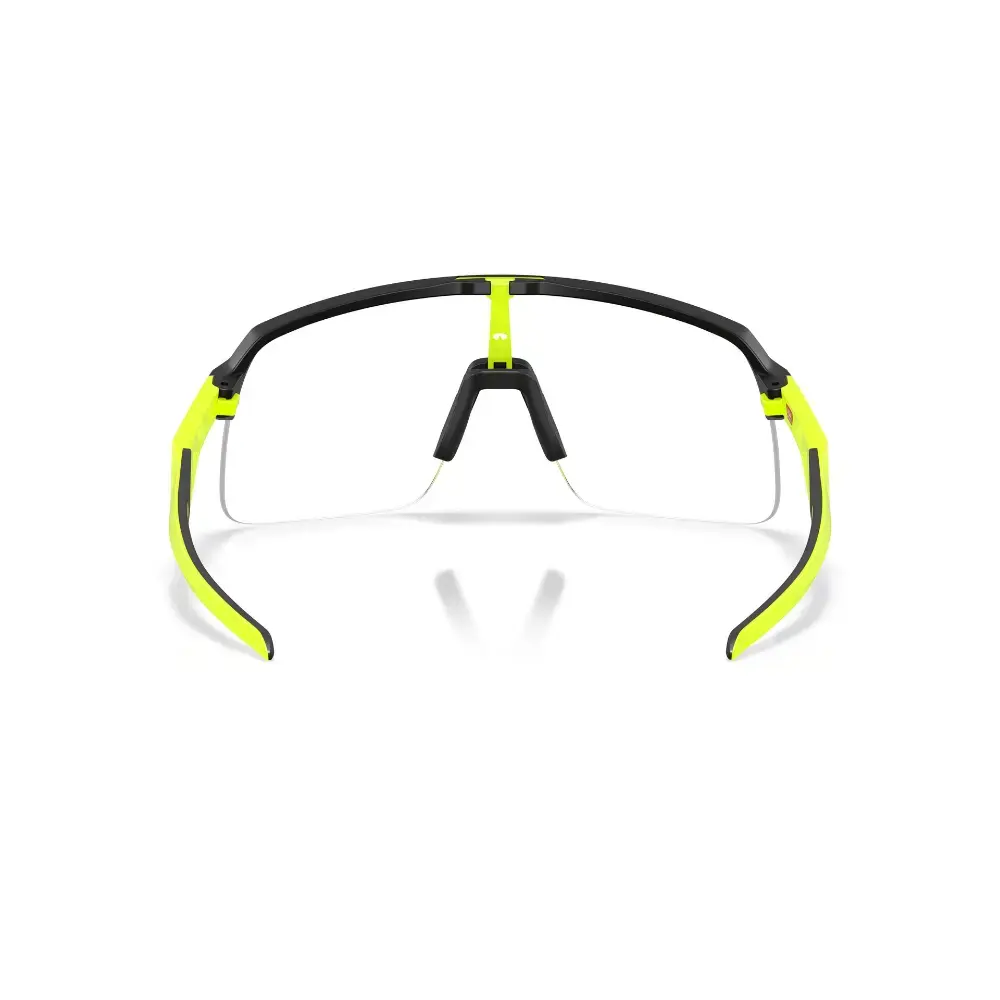 De Oakley Sutro Lite Sport Zonnebril is een semi-randloze zonnebril voor een groter gezichtsveld. Het model is hetzelfde als de Oakley Sutro-collectie, maar heeft een randloos frame aan de onderkant. Dit geeft ten eerste een extra sportieve look, maar ook een ruimer gezichtsveld. De bril is ontworpen voor het dagelijks leven van ‘urban’-fietsers, maar is ook geschikt voor sportfietsers. Het O Matter™ materiaal van het frame en het Unobtainium® materiaal van de neusstukken zorgen voor een geweldige pasvorm en een hoog draagcomfort. De Clear Lens heeft een lichtdoorlatendheid van 93% en biedt bescherming tegen vliegen en opspattend vuil bij weinig licht.
