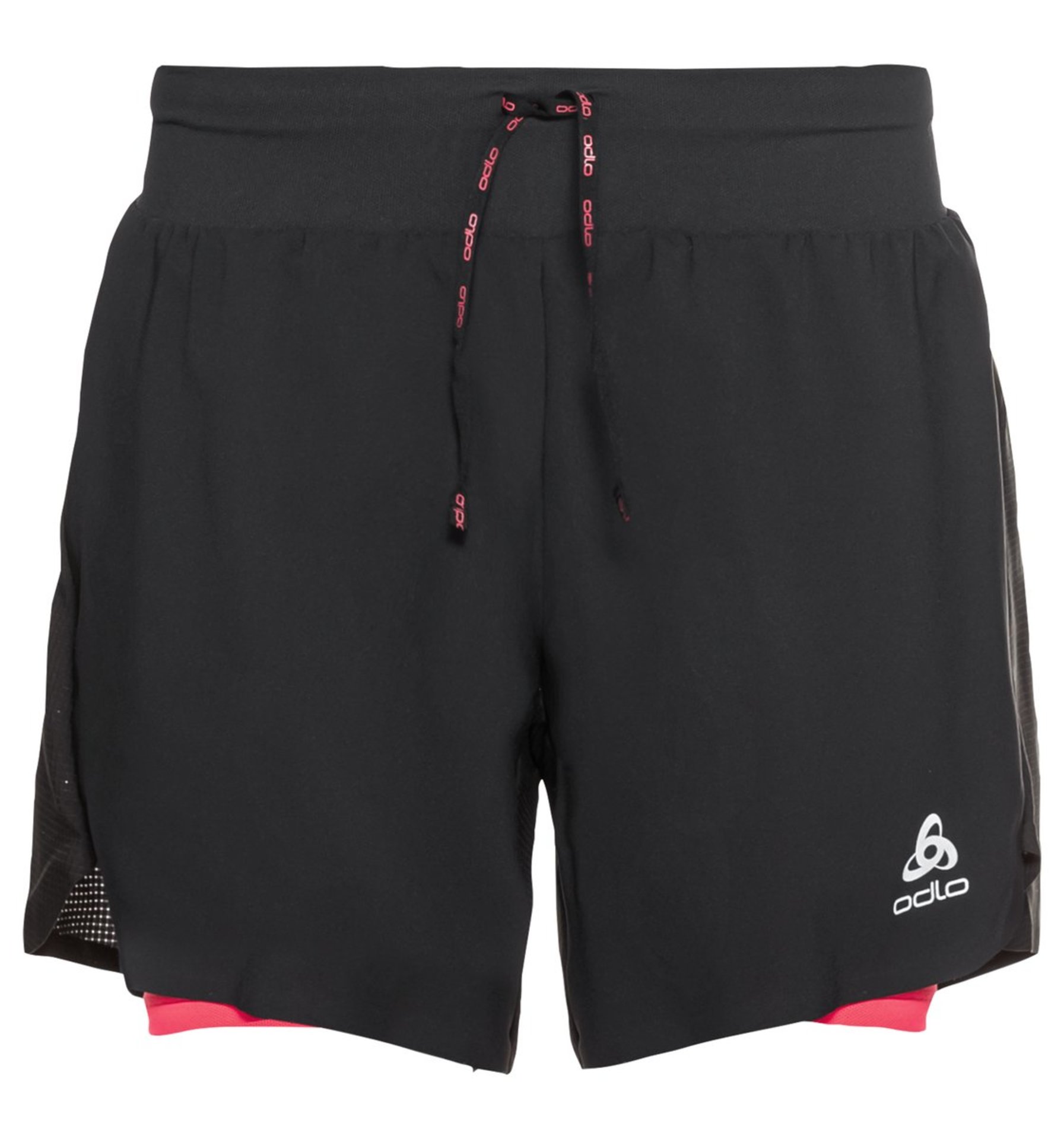 Stel je vraag over de Odlo Axalp Trail 2-in-1 Hardloopbroek Kort Zwart/Roze Dames.