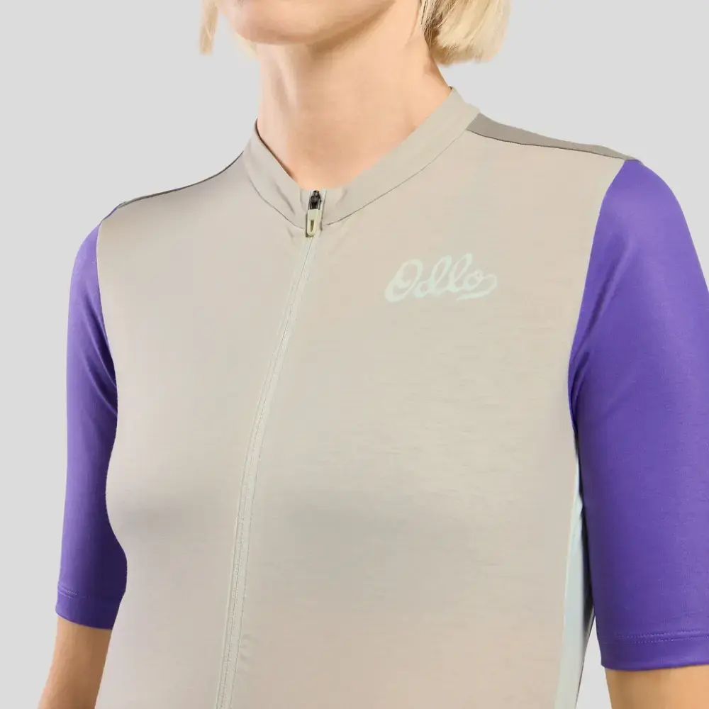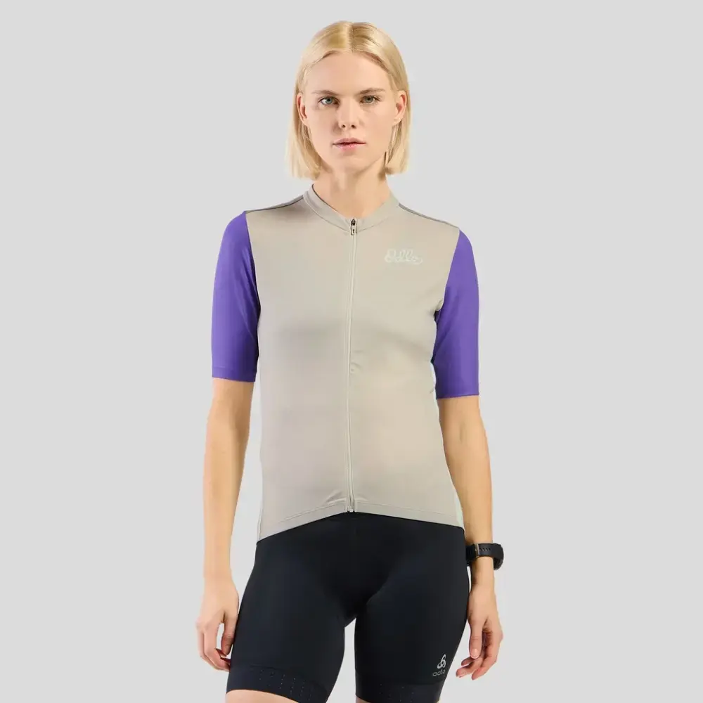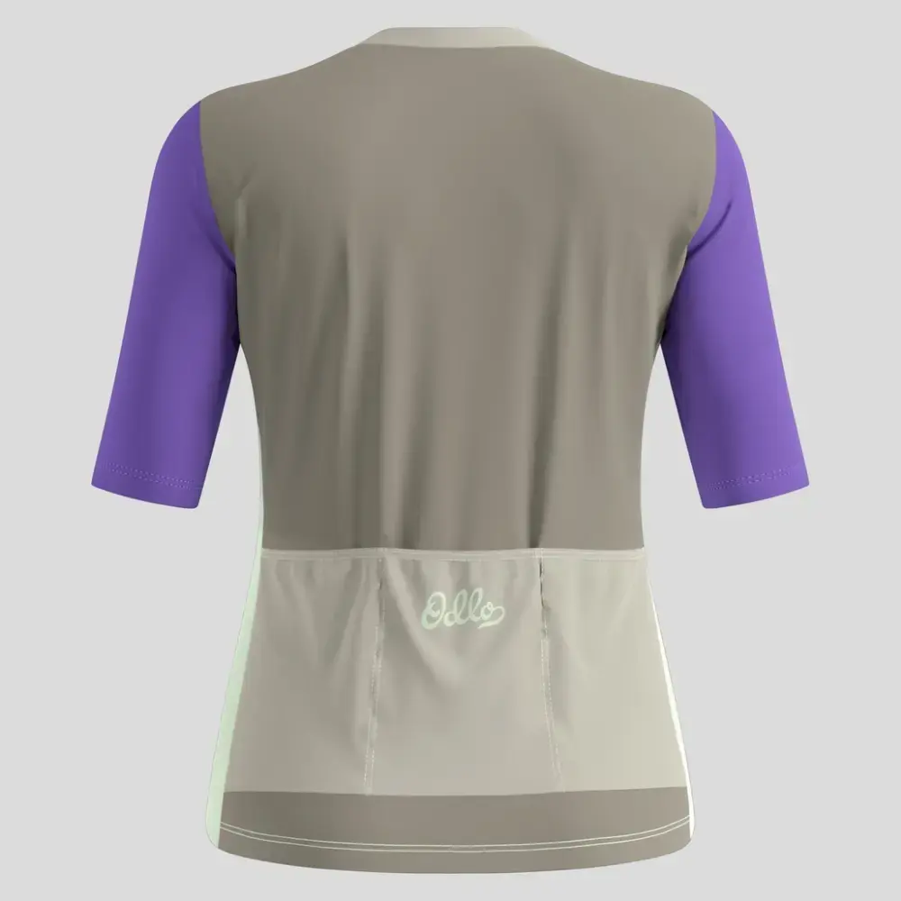 Odlo Essential Heritage Print Fietsshirt Korte Mouwen Grijs/Paars Dames