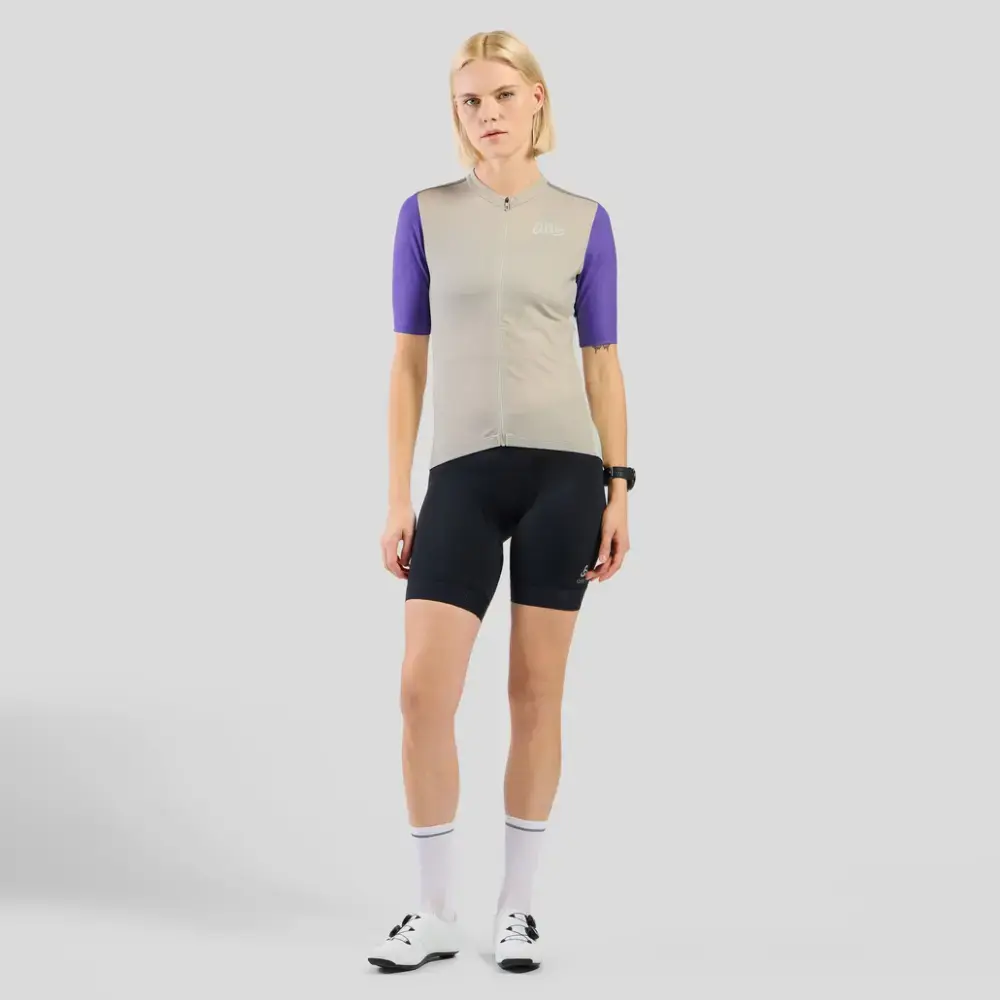 Stel je vraag over de Odlo Essential Heritage Print Fietsshirt Korte Mouwen Grijs/Paars Dames.