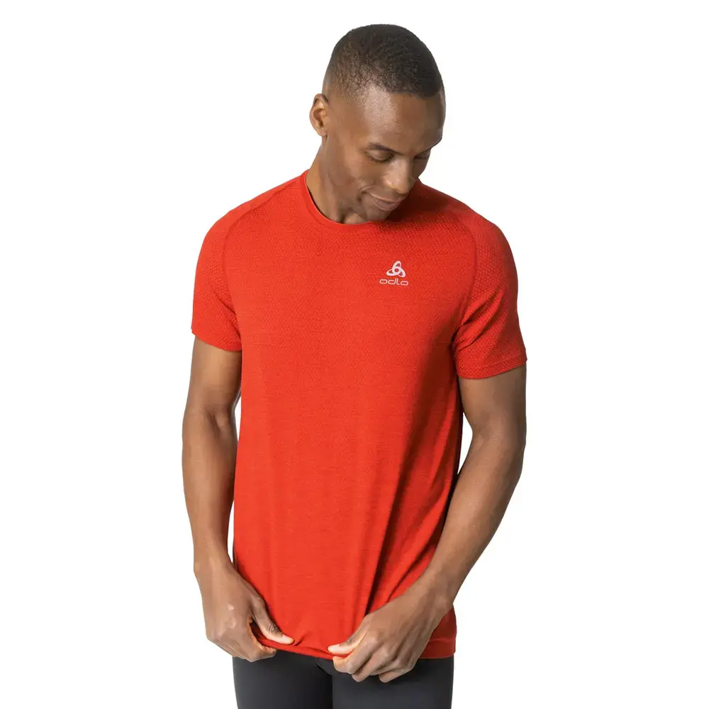 Odlo Essential Seamless Hardloopshirt Korte Mouwen Rood Melange Heren