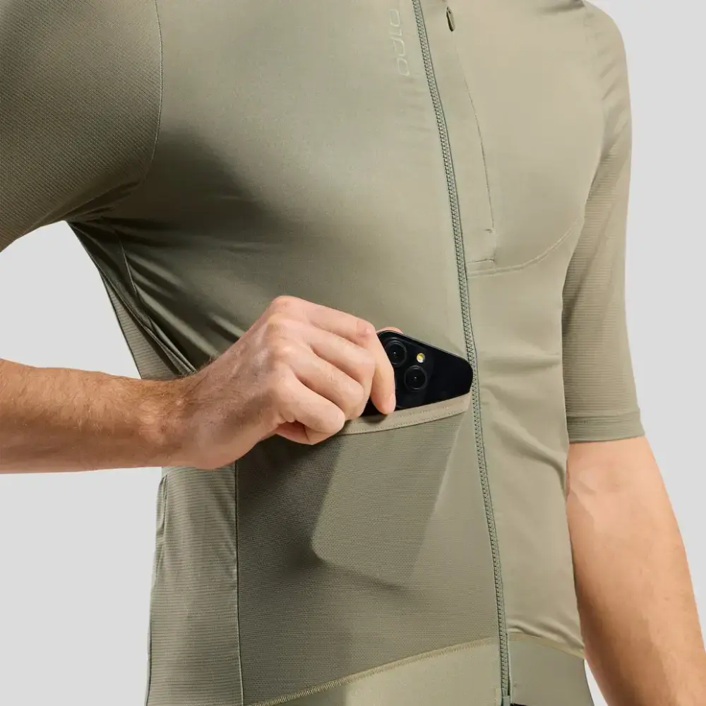 Het Odlo Explorer Pro Fietsshirt Korte Mouwen Heren is ontworpen voor fietsers die comfort, ventilatie en duurzaamheid zoeken. Dit shirt maakt gebruik van superlicht, ademend Chill-tec materiaal op de mouwen, onderarmen en zijkanten van het shirt, gecombineerd met een comfortabele stretch stof voor een perfecte pasvorm. Het shirt is volledig gemaakt van gerecycled materiaal en heeft een geïntegreerde siliconen gripper aan de onderzoom om het shirt op zijn plaats te houden tijdens het fietsen. Daarnaast biedt het diverse zakken voor het opbergen van je essentials, inclusief een borstzak, een voorzak voor snacks en drie achterzakken. Reflecterende details zorgen voor zichtbaarheid in lage lichtomstandigheden, waardoor dit shirt de ideale keuze is voor fietstochten in de vroege ochtend of late avond.