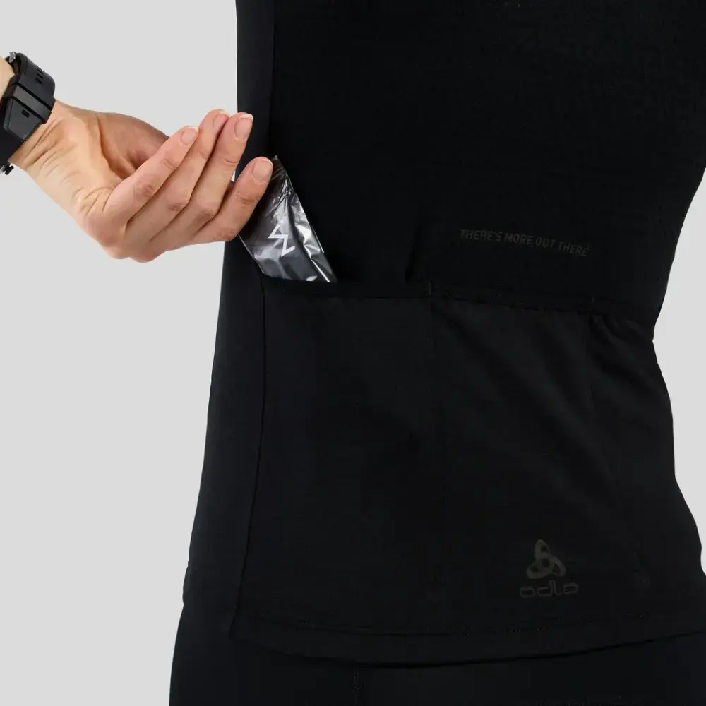 Het Odlo Zeroweight Merino Full Zip Fietsshirt Kort Dames is de perfecte keuze voor zomerfietstochten. Het shirt is gemaakt van Nuyarn's merino blend van 85% merino en 15% polyamide, wat zorgt voor ademend vermogen, snel drogen, en natuurlijke geurcontrole. De unieke merino mesh achteraan zorgt voor extra ventilatie en comfort, terwijl de elastische tape met siliconen grippers de achterzoom op zijn plaats houdt. Met 3 achterzakken en reflecterende details is het ideaal voor lange ritten en weekendavonturen op de weg of gravel.