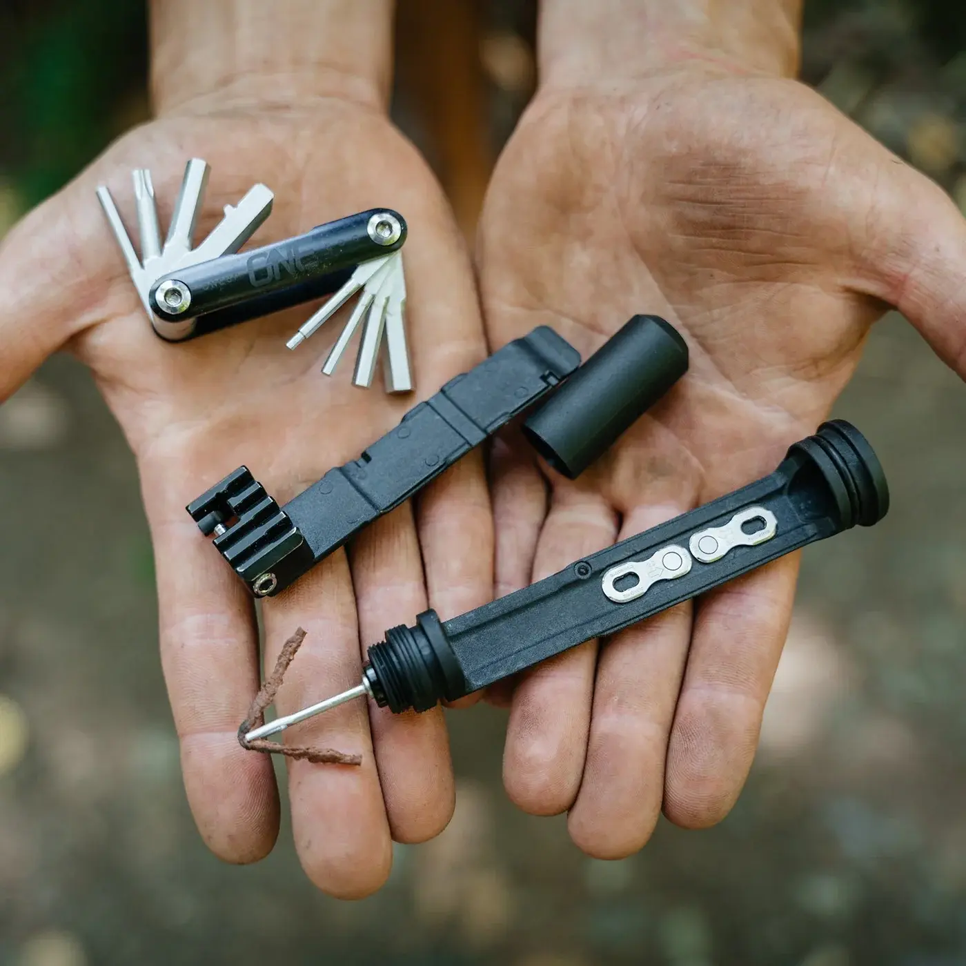 De OneUp 100cc EDC Mini Pomp is dé oplossing voor mountainbikers en gravelrijders die compactheid, efficiëntie en multifunctionaliteit eisen. Met zijn indrukwekkende volume-gewichtverhouding is deze pomp ideaal voor het onderweg snel oppompen van je band. De holle aluminium constructie biedt ruimte voor een EDC Tool en een Plug & Plier Kit of een 20g CO2-patroon. Dankzij het Fast-On ventielontwerp minimaliseer je het risico op schade aan het ventiel. Of je nu trails rijdt of afgelegen gravelwegen verkent, met deze pomp ben je op alles voorbereid.