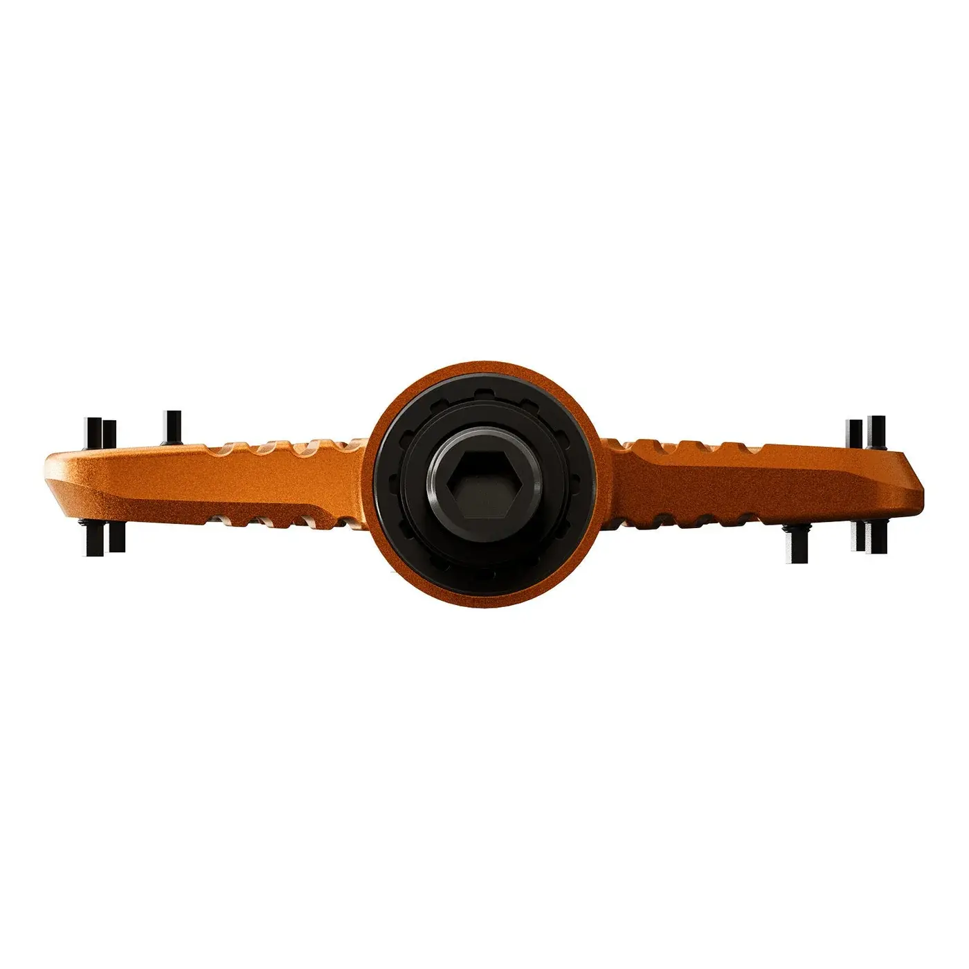 Clip minder rotsen met de ultradunne en bijzonder gripvaste OneUp Aluminium Flat MTB Pedalen! Dankzij het grote platform met tien vervangbare pinnen per zijde biedt dit pedaal optimale grip, zelfs op ruige trails. Het subtiel convex profiel volgt de natuurlijke vorm van je voetboog voor extra comfort en controle, terwijl de robuuste aluminium constructie zorgt voor duurzaamheid zonder overbodig gewicht. Met slechts 386 gram per paar en compatibiliteit met SRAM carbon cranks is dit pedaal de ideale keuze voor veeleisende trail- en enduro-rijders. De OneUp Aluminium Flat Pedalen combineren een groot platform van 115x105mm met een subtiel convex profiel dat zich perfect vormt naar de voet. Dankzij de 10 vervangbare pinnen per zijde blijf je stevig op je pedaal staan, zelfs in natte omstandigheden. De duurzame constructie van 6061-T6 aluminium en een CrMo-as zorgen ervoor dat deze pedalen de zwaarste afdalingen aankunnen, zonder je klimprestaties te belemmeren dankzij het lage gewicht van 386 gram per paar.