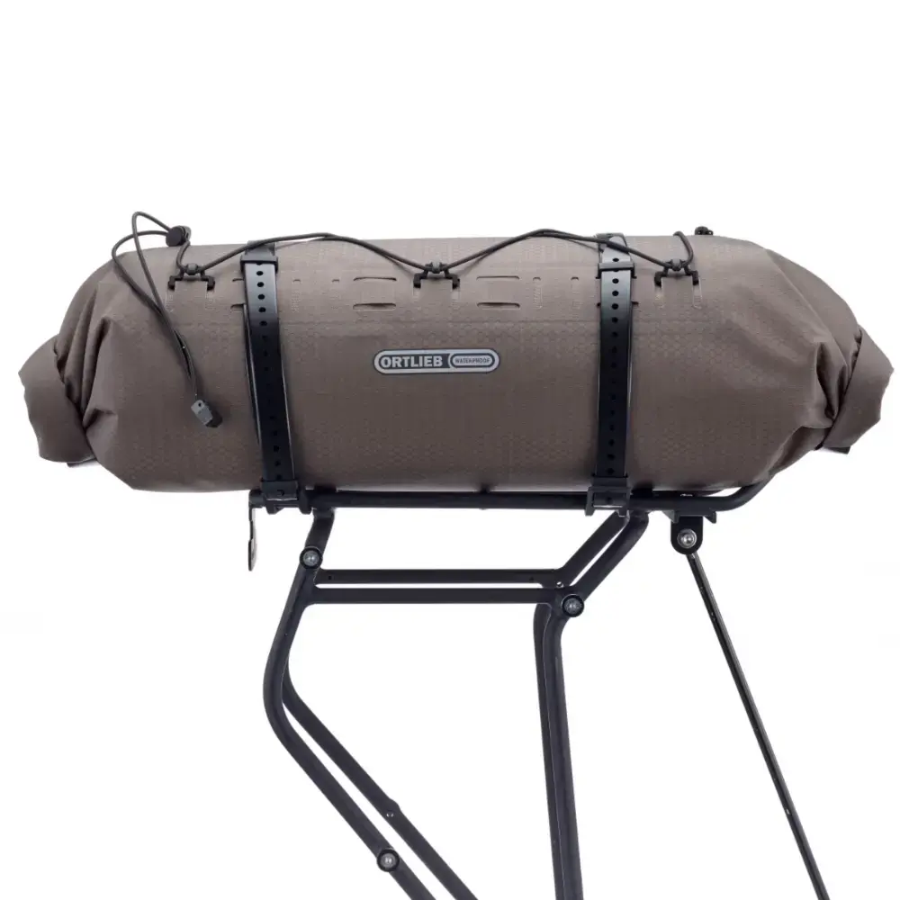 Deze drybag is makkelijk vast te zetten op een Ortlieb Quickrack. Door de elestieken bovenop is het makkelijk extra dingen mee te nemen die nat mogen worden of juist moeten drogen. Door het ventiel kun je alle extra lucht eruit persen en is die nog compacter