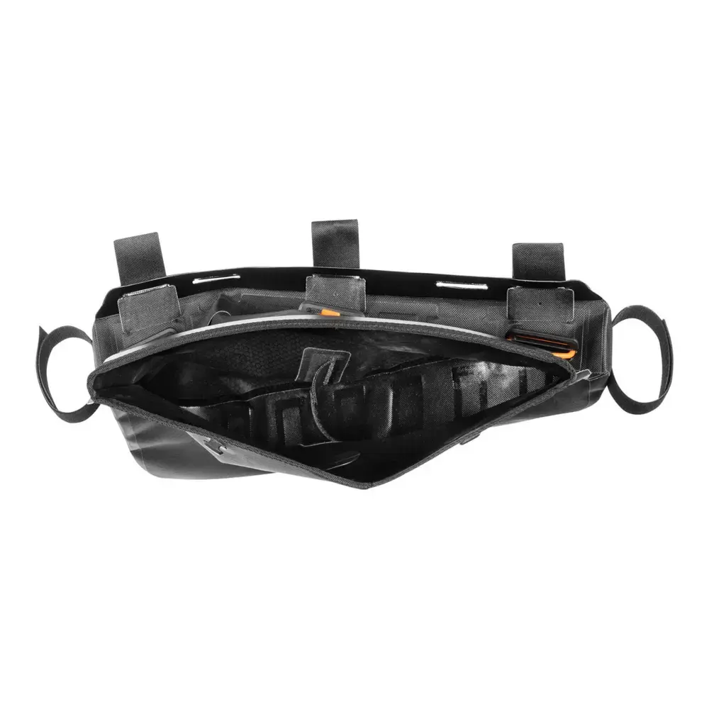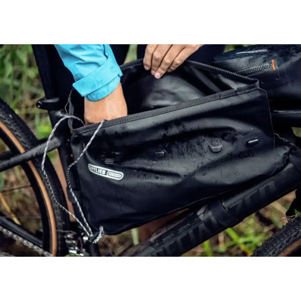 Met de Frame-Pack RC frametas van ORTLIEB pak je je framedriehoek gestructureerd vol met je meerdaagse benodigdheden. Deze frametas blijft dicht tegen je frame en wordt stabiel bevestigd met sterke klittenbandriemen rond je boven- en zadelbuis. Montage van een frametas is ideaal voor zwaardere items zoals gereedschap of kookgerei. Het materiaal is waterdicht en de tas wordt afgesloten met een rolsluiting, zodat je gear veilig en vertrouwd opgeborgen is. Door interne klittenband riem zet je de bagage nog eens extra goed en stabiel vast.