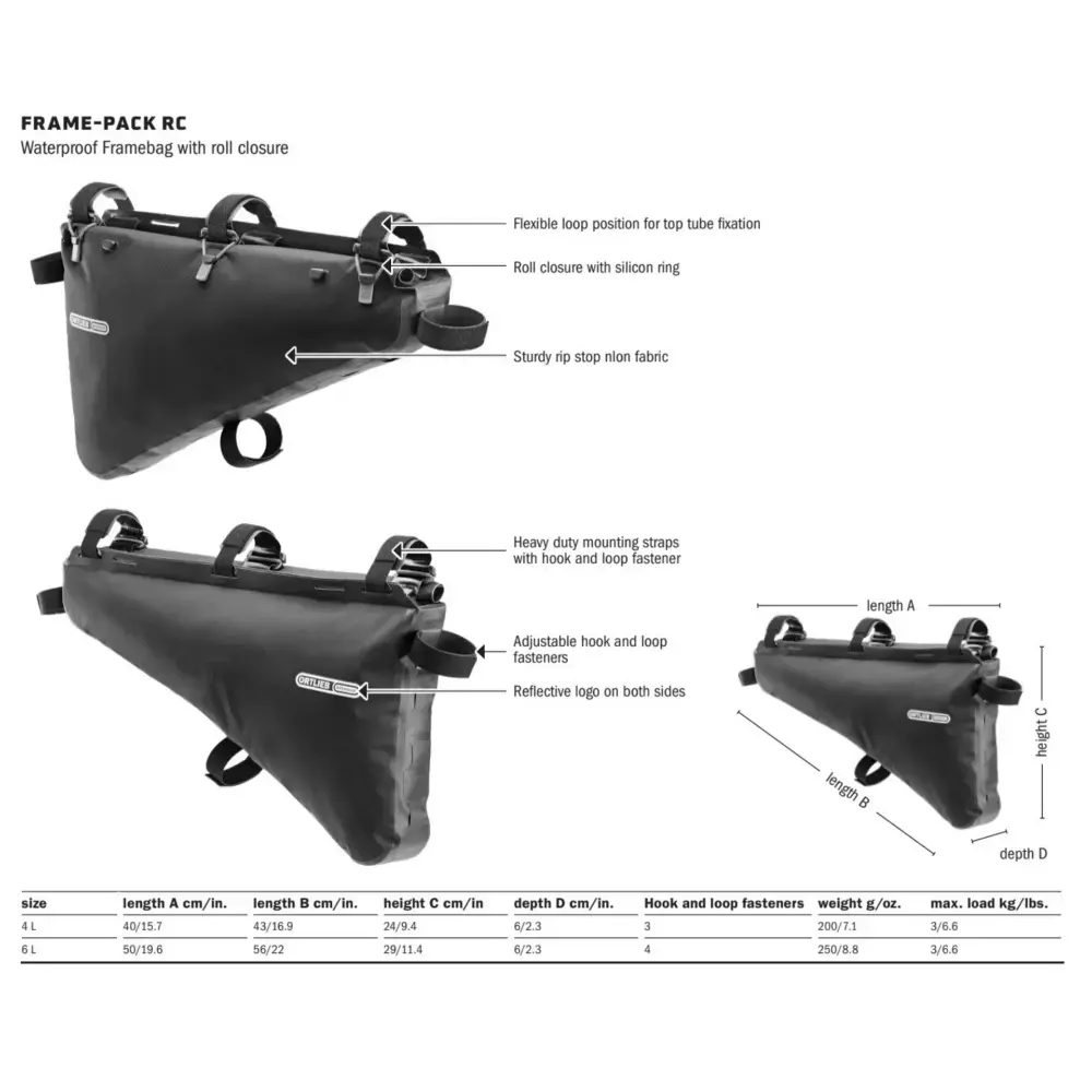 Specificaties ORTLIEB Frame-Pack RC 4L Frametas