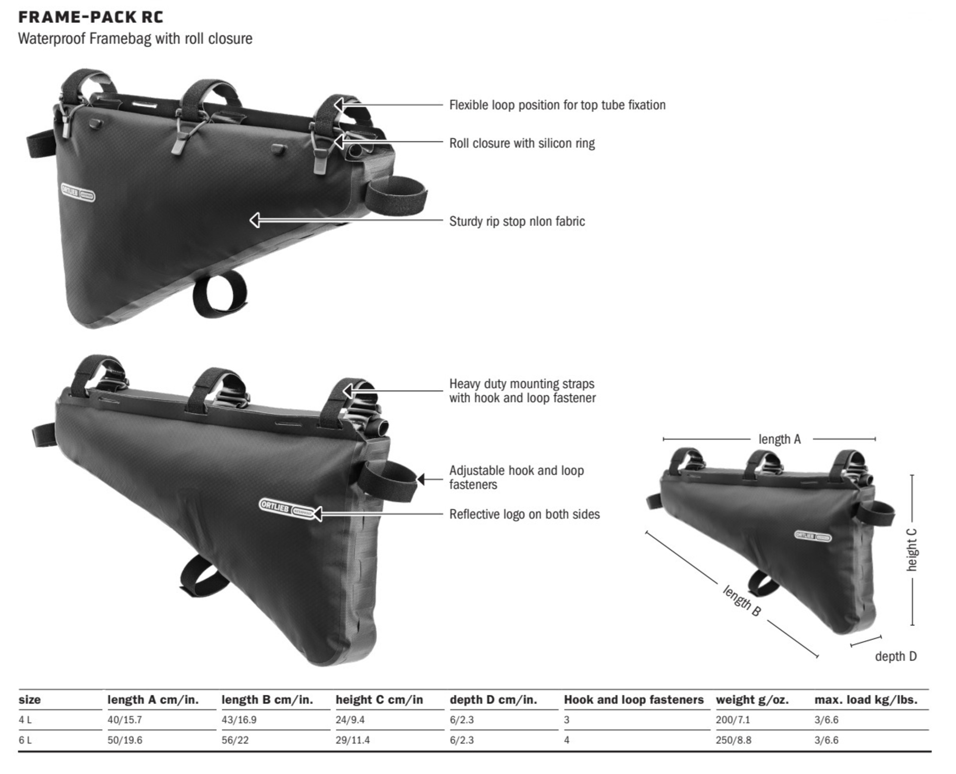 Specificaties ORTLIEB Frame-Pack RC 6L Frametas