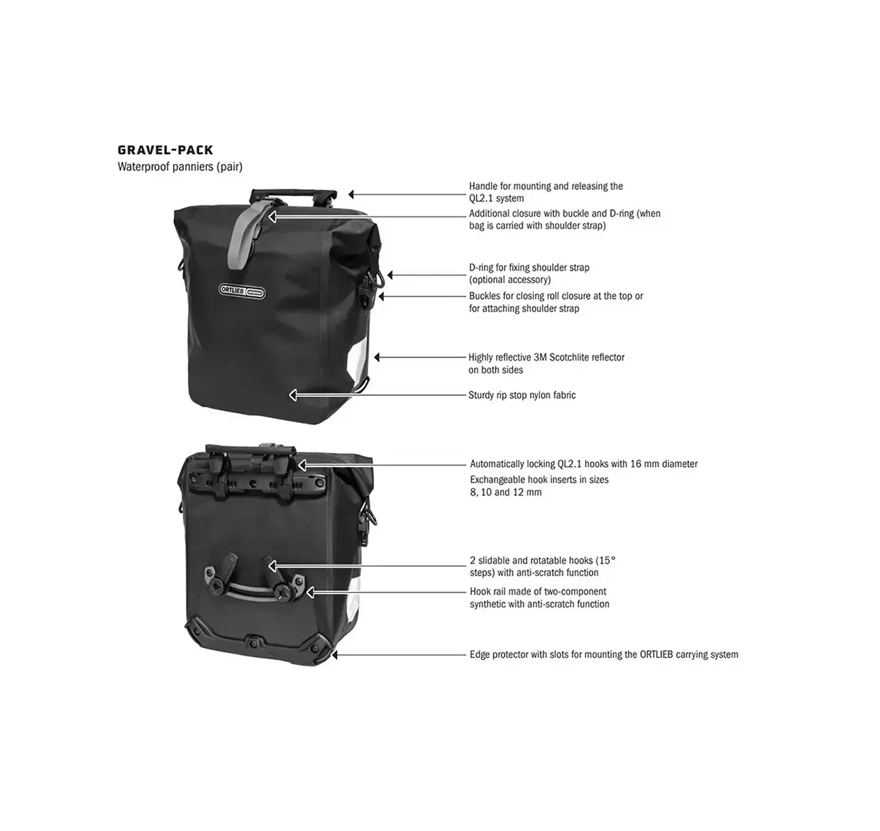 Specificaties ORTLIEB Gravel-Pack QL2.1 29L Voortassen