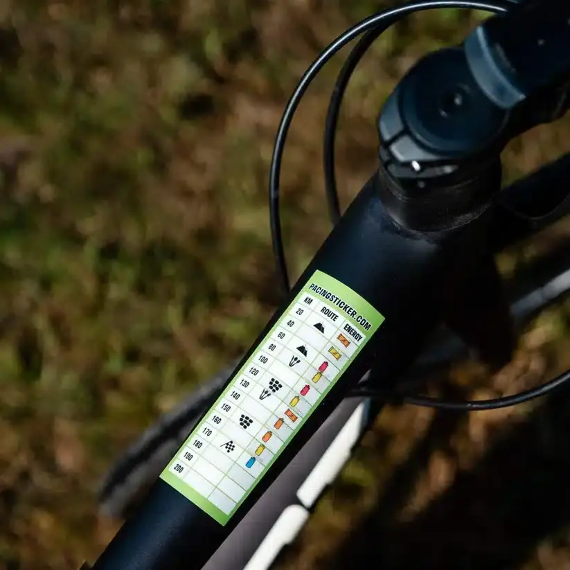 Vanaf nu bereid je jouw persoonlijke voedingsplan en wedstrijdspecifieke elementen zoals beklimmingen, kasseien en bevoorradingen eenvoudig voor met een Pacing Sticker op je stuur of bovenbuis. Marginal gains zoals een lichtere fiets en aerodynamische sokken zijn mooi, maar grote resultaten behaal je door je krachten optimaal te verdelen. Of je nu met de racefiets, MTB, TT- of gravelfiets rijdt of een Iron Man of Gran Fondo op de planning hebt staan: een goed pacing plan is onmisbaar. De moderne verwijderbare Pacing Sticker is het ideale geheugensteuntje om hongerkloppen en tijdverlies te voorkomen en helpt je je race perfect in te delen.