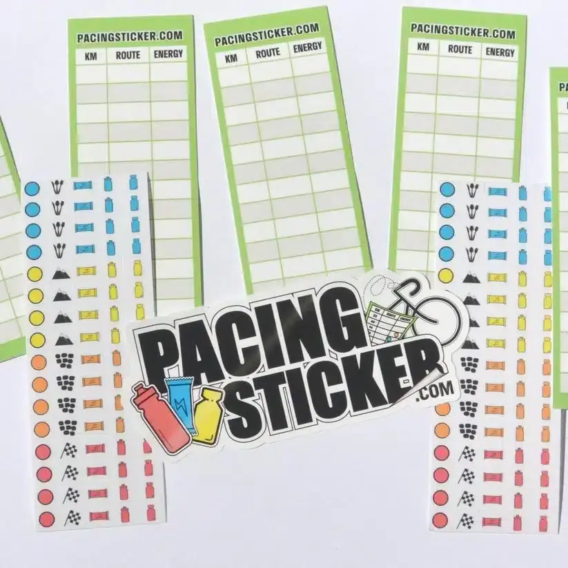 De Pacing Sticker is eenvoudig aan te brengen en weer te verwijderen. Je stelt vooraf je pacing plan op door de icoontjes op het rooster te plakken en bevestigt de sticker op je stuurpen of bovenbuis. Controleer voor vertrek dat het oppervlak schoon is en dat je voldoende bidons, gelletjes en energierepen hebt voorzien. Tip: bereid je plan de dag voor de race voor, zodat je met mentale rust aan de start verschijnt.