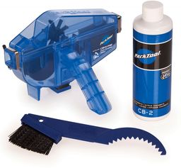 Met deze handige kettingreiniger van Parktool zorg je dat je ketting altijd in topconditie verkeert! Een vuile aandrijving veroorzaakt slecht schakelen en onnodige slijtage van dure onderdelen. Het CG-2.2 Ketting Onderdelen Reinigingssysteem bevat alles wat nodig is om snel en gemakkelijk de onderdelen van een ketting schoon te maken. Het pakket bevat een CM-5 Cyclone kettingreiniger, een GSC-1 GearClean Borstel en een fles speciaal schoonmaakmiddel voor de ketting. Het CG-2.2 Ketting Onderdelen Reinigingssysteem werkt op alle fietsen die over een derailleur beschikken, fietsen met 3 versnellingen en fietsen met enkel een terugtraprem.