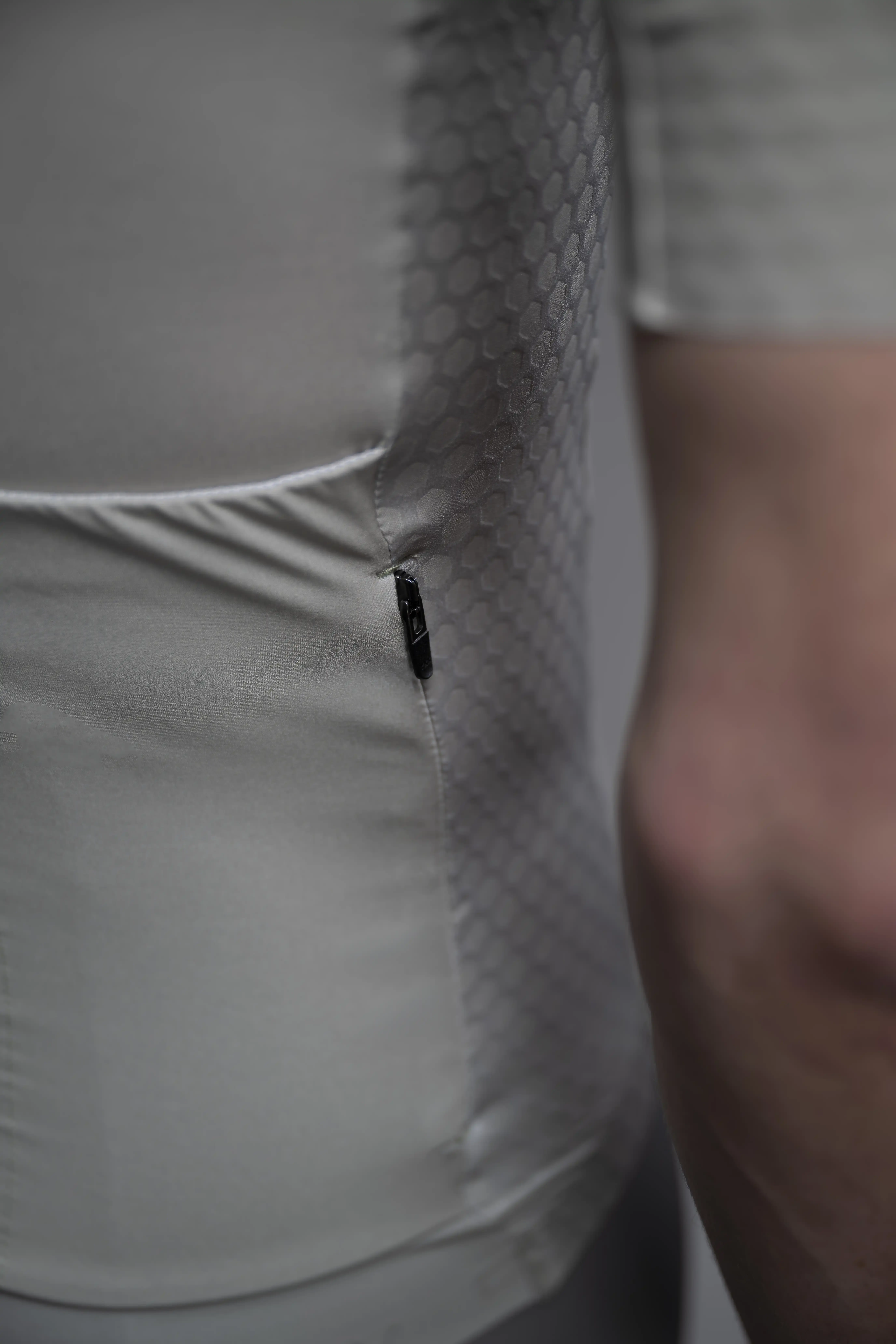 De speciaal ontwikkelde stoffen zijn geweven, de beste manier om tot hoogwaardige stoffen te komen. Bovendien geeft het de stof zijn diepe, matte kleur die ook nog eens lang mooi blijven. Toch biedt de stof niet alleen een exclusieve look, maar ook functionele voordelen zoals een uitmuntend ademend vermogen en een ultralichte constructie. De 4-way stretch en UPF 50+ bescherming zorgen voor comfort en veiligheid onder de zon. De strakke Racing Fit pasvorm en de aero-eigenschappen je helpen elke rit optimaal te presteren. De rits op de voorzijde is van hoge kwaliteit en ook deels open te zetten om de ventilatie verder te regelen.