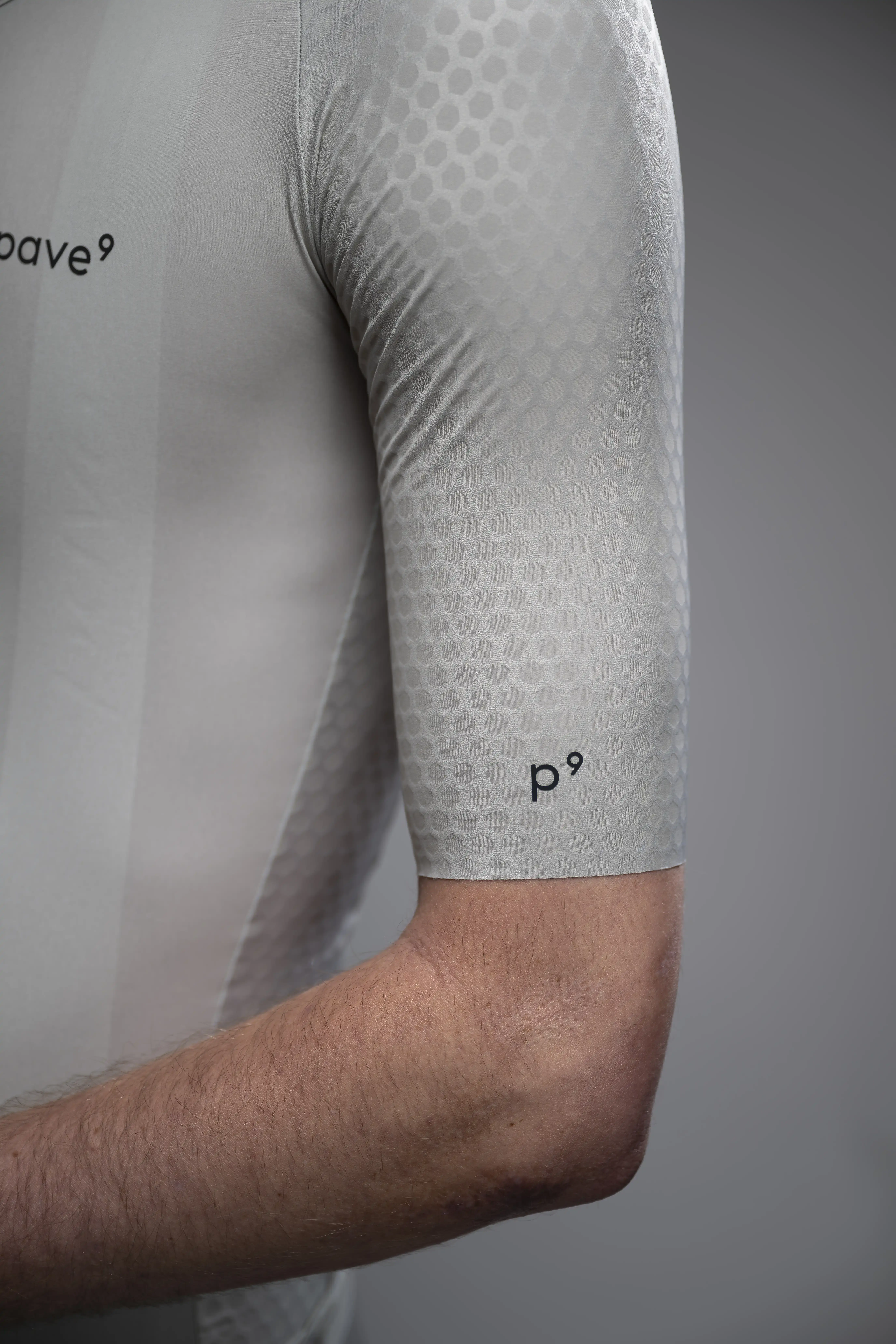 Deze pave9 Capsule Jersey met korte mouwen is een toonbeeld van de filosofie 'the road is my runway'. Dit shirt, met zijn strakke race-pasvorm en stijlvolle matte afwerking, verenigt high-fashion met topprestaties op de fiets. De speciaal ontwikkelde stof op de mouwen en schouders, geweven van de hoogwaardige garens, zorgt voor een unieke uitstraling. Veel lycra wordt gemaakt van gebreide stof. Dat is voordelig, maar deze geweven stof is van veel hogere kwaliteit, kan dunner en lichter worden gemaakt en is ook nog eens veel sterker en dus duurzamer.