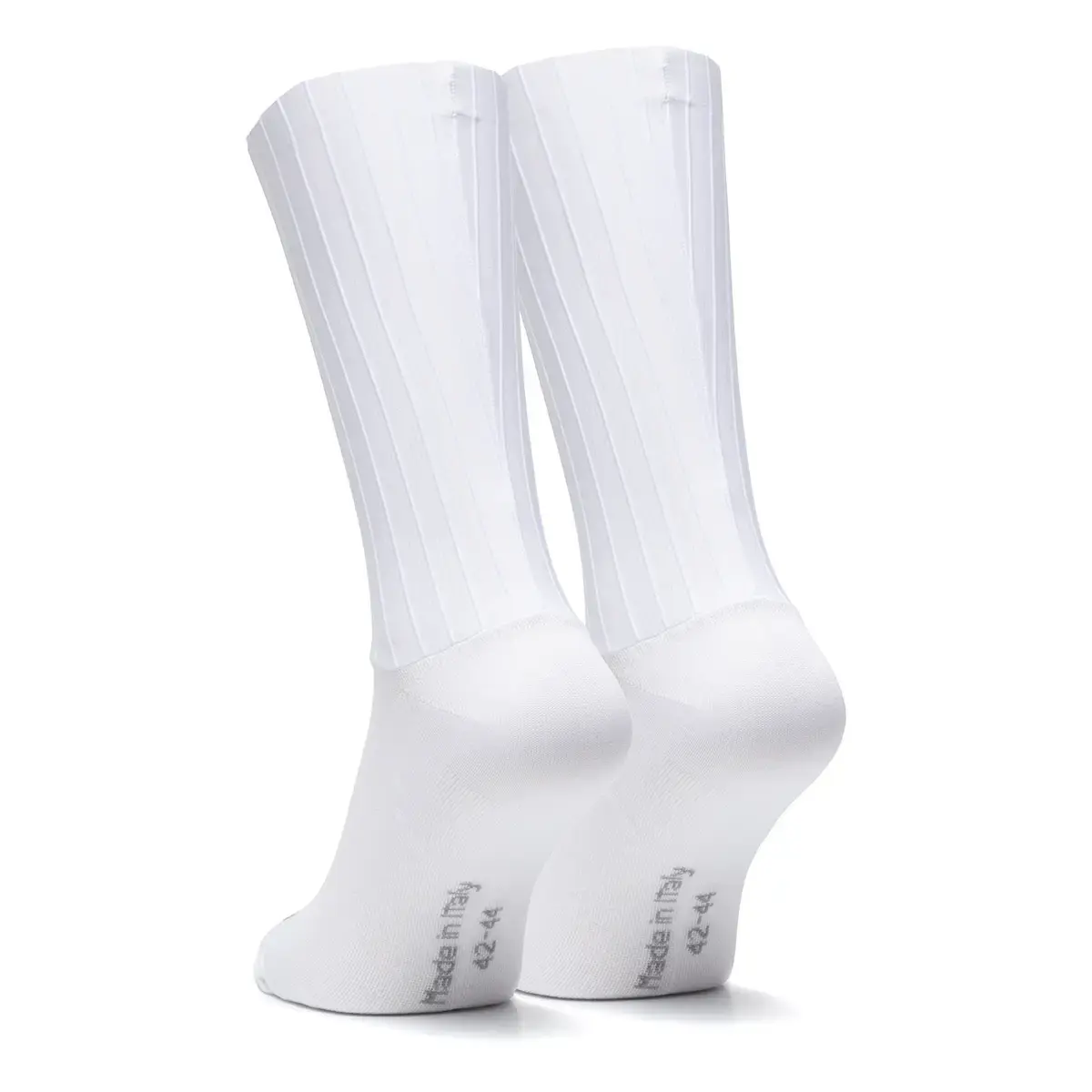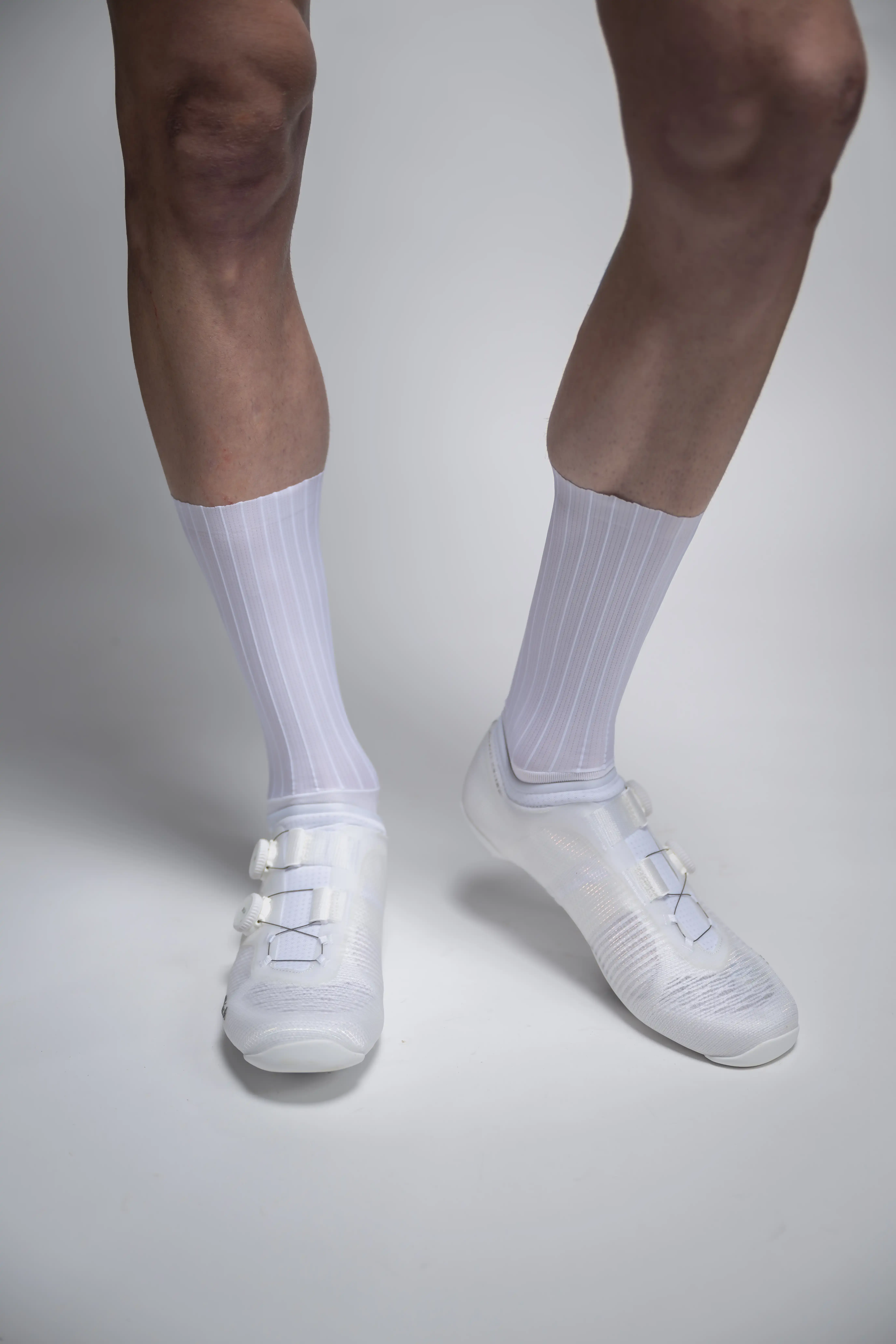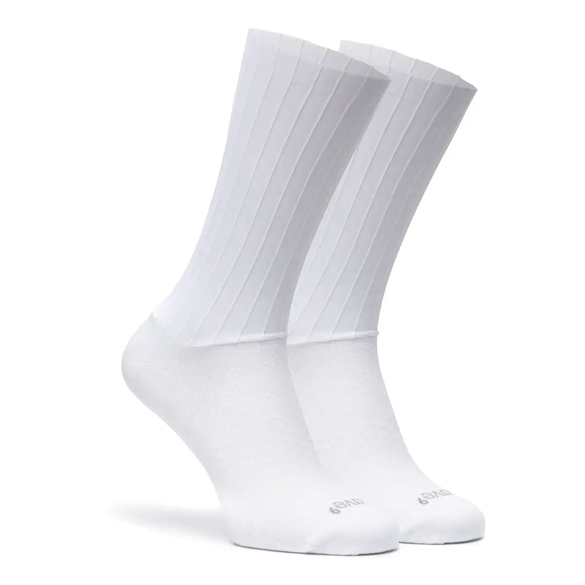 Snelheid zit in de details. De Pave9 Icon Sokken zijn ontworpen met aerodynamische stoffen die de luchtstroom optimaliseren en je nóg sneller door de wind laten rijden. Strak, snel en stijlvol. De stof geeft je niet alleen dat aerodynamische voordeel, maar ook het comfort die je verwacht als gesoigneerde wielrenner. De sokken sluiten zeer goed aan en blijven perfect op hun plek door de siliconen gripper. De aerostof loopt door tot in je schoen, zodat je maximale aerodynamica ervaart. De finishing touch voor wielrenners die prestaties en uitstraling even serieus nemen.