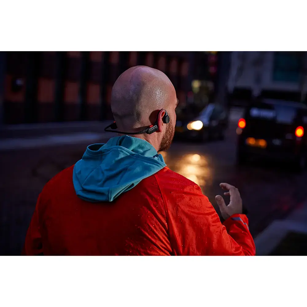 Deze GO Sports Open Ear Koptelefoon is een draadloze koptelefoon met botgeleiding en een open-ear design. Hierdoor kan je zowel genieten van je muziek als je veilig in het verkeer begeven. Je oren zijn namelijk vrij met deze techniek. De koptelefoon heeft een IP67 waterbestendigheid, wat inhoudt dat hij bestand is tegen regen en zweet. Hierdoor kan je de koptelefoon in vrijwel alle omstandigheden gebruiken. De nekband is intern van titanium, dat sterk is en lekker licht van gewicht. Het lage gewicht van de nekband voorkomt dat deze gaat irriteren tijdens lange sportieve sessies.