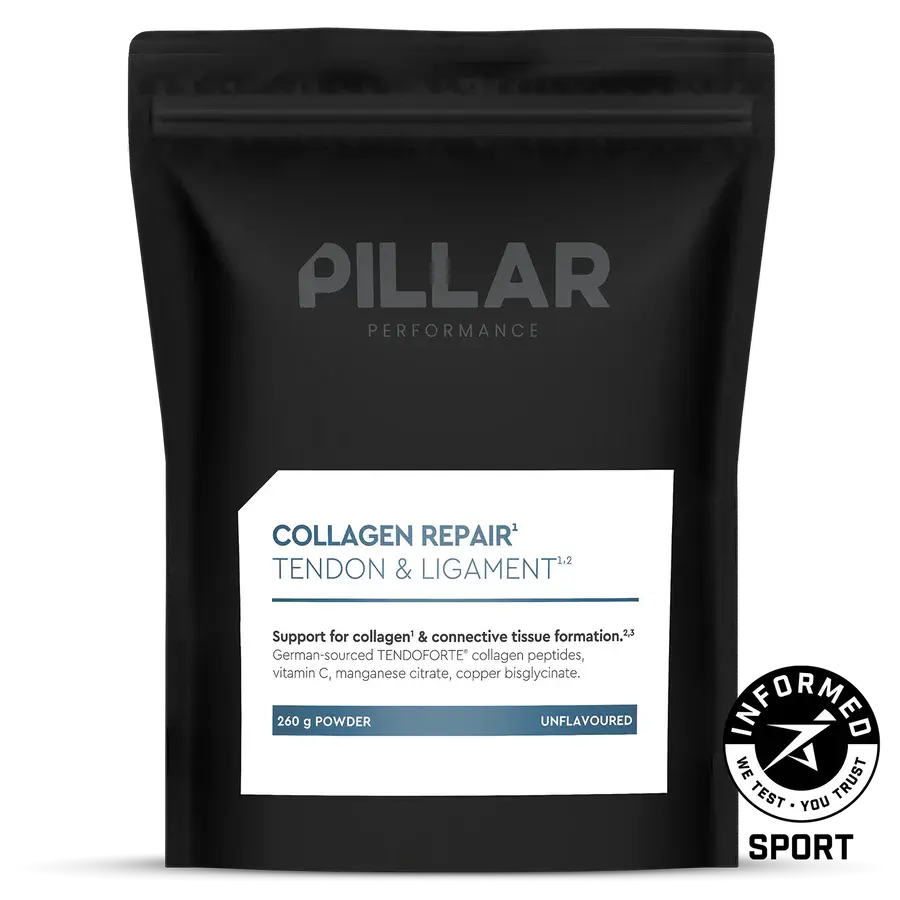 Pillar Collagen Repair is een supplement dat is ontwikkeld om pezen, gewrichtsbanden en kraakbeen te ondersteunen. Dit product bevat Tendoforte® bioactieve collageenpeptiden. Vitamine C ondersteunt de natuurlijke collageenvorming, terwijl koper en mangaan onderdeel zijn voor de vorming van bindweefsel in kraakbeen en botten. Ideaal voor sporters die hun gewrichten en pezen extra willen ondersteunen tijdens intensieve trainingen en wedstrijden.