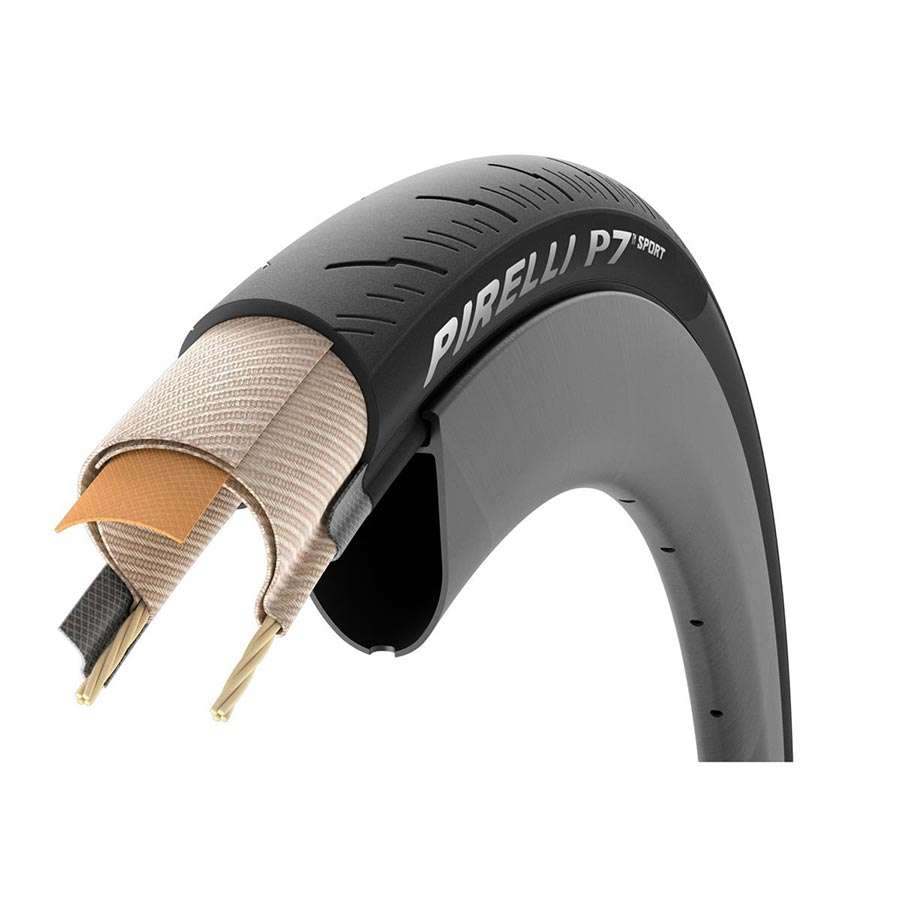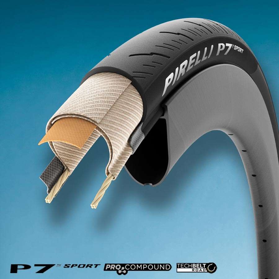 De Pirelli P7 Sport Race vouwband is de ideale trainingsband voor allround wielrenners en kilometervreters die het hele jaar door trainen. Met de P7 Sport richt Pirelli zich op de toerrijders, met een trainingsgerichte band die uitblinkt in protectie, duurzaamheid en grip. De band heeft in vergelijking met de PZero meer lamellen die grip in koude omstandigheden bieden. Ook voor de rijders die meer comfort zoeken, bijvoorbeeld tijdens bikepacking, is deze band zeer geschikt. De band komt in vier breedtematen, te weten de 700x24C, 26C, 28C en 32C. Het PRO compound met TechBELT ROAD behuizing heeft een TPI van 60 en heeft een extra beschermingslaag onder het loopvlak.