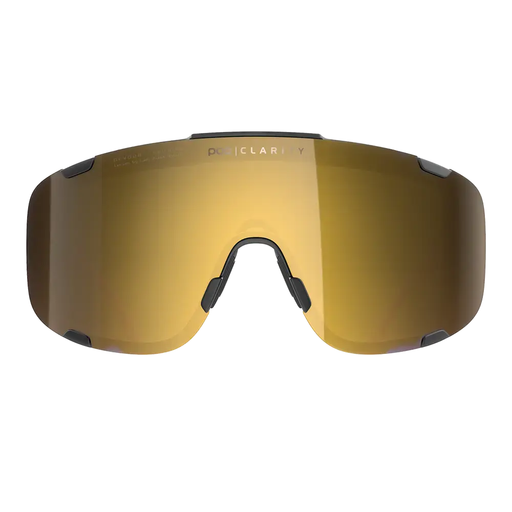 De POC Devour Sport Zonnebril combineert het beste van een vizier en een zonnebril en biedt een uitzonderlijke dekking en bescherming tegen UV-straling. De Devour beschermt zoals een vizier met de vrijheid en flexibiliteit van een zonnebril, en sluit naadloos aan op de nieuwe POC Kortal helm. Met het verstelbare neusstuk en de volledig verstelbare pootjes vind je eenvoudig een veilige en comfortabele pasvorm. Het ontwerp van het montuur maximaliseert het zicht opzij, en de lens is voorzien van Clarity-technologie voor optimaal zicht tijdens het fietsen. Een extra, heldere lens wordt meegeleverd. Het wisselen van de lenzen gaat eenvoudig. Dankzij de RiPel anti-vuil- en anti-krascoating blijven de lenzen ook bij intensief gebruik in topstaat! Deze Road Gold lens valt in categorie 2 wat betreft lichtdoorlatendheid. Dit betekend dat deze geschikt is voor gemiddeld zonlicht, ideaal voor wanneer je in het bos fietst, deze lens verhoogd tevens het contrast, waardoor de weg voor je extra goed te zien is.