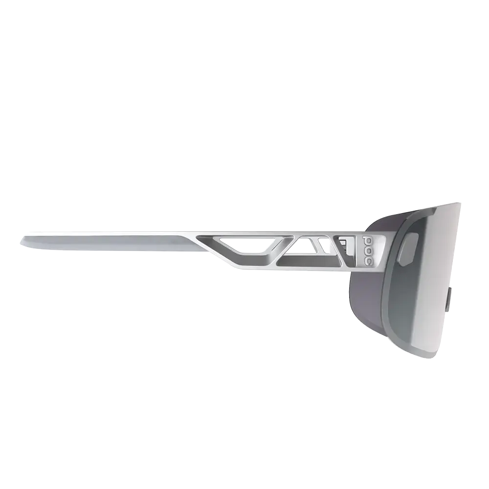 Deze POC Elicit Sport Zonnebril biedt een frameloos ontwerp met een enkele lens en extra licht montuur. Door delen van het montuur open te laten wordt een minimaal aan materiaal gebruikt, waardoor gewicht wordt bespaard. De speciale pootjes breken niet af tijdens een val, maar vallen er wel af, waarna je ze gemakkelijk weer kan monteren. Het montuur is gemaakt van een nieuw materiaal genaamd ‘biogrilamid’. Net zo licht en sterk als het bekend grilamid, maar nu grotendeels gemaakt van gerecyclede materialen voor een lagere impact op het milieu. Alle brillen binnen deze serie zijn voorzien van Clarity lenzen, welke contrast verhogend werken, waardoor details in de weg beter zichtbaar worden. Ook zijn de lenzen voorzien van RiPel anti-vuil en water behandeling en beschikken ze over een anti-kras laag. Ook zijn de lenzen gemakkelijk verwisselbaar en worden de brillen geleverd met een extra transparante lens. Voor een optimale pasvorm zijn de pootjes verstelbaar en het neusstuk vervangbaar. Deze zonnebril wordt geleverd met een Define Silver lens, welke binnen categorie 3 valt en dus perfect is voor dagen met een felle zon.