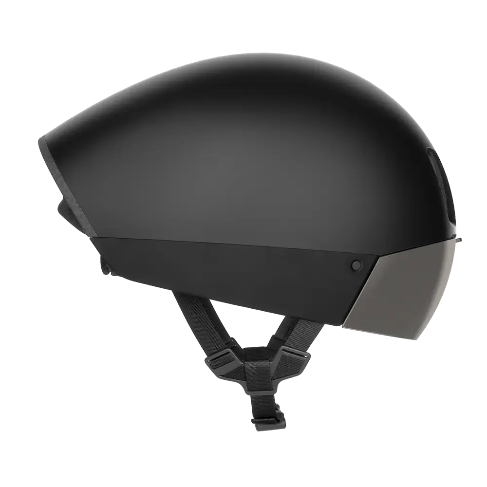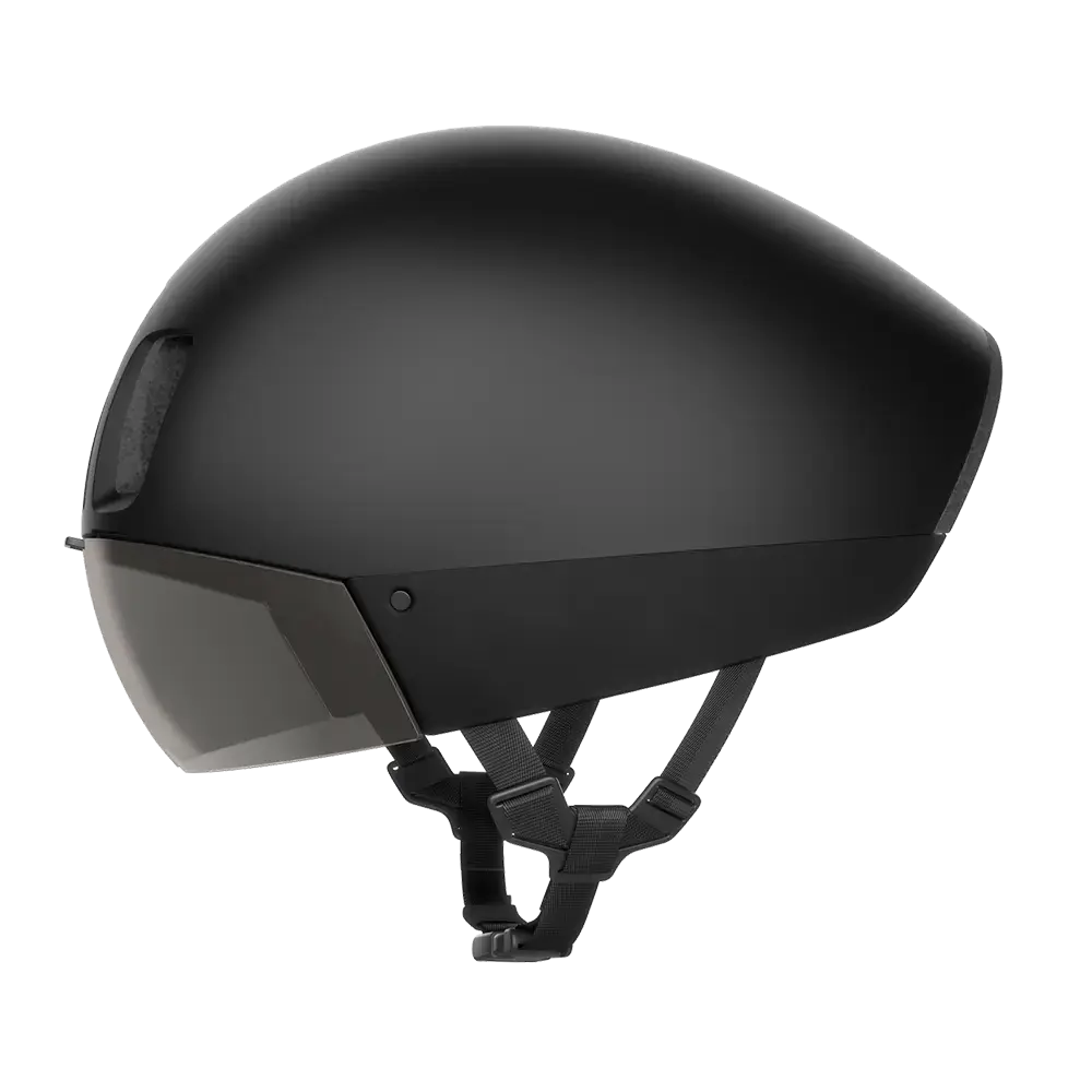 De POC Procen Air Race Fietshelm is speciaal ontworpen voor zeer snelle ritten. Perfect voor tijdritten of een triathlon. Deze helm is speciaal ontworpen om jou niet alleen zo snel mogelijk van A naar B te krijgen, maar dit ook met de benodigde verkoeling. Zo heb je een zo laag mogelijke luchtweerstand, maar kan je ook een maximale prestatie neerzetten. De helm is voorzien van een schokabsorberende ESP liner en heeft geen luchtinlaten op de helm zelf. De extreme vorm is in de CFD simulator ontworpen en getest op de weg. Er zitten geen luchtgaten aan de voorzijde maar wel aan de achterzijde. Hier wordt de vorm ook smaller en gaat de lucht die erlangs gaat sneller. Deze zuigt als het ware de warme lucht uit de helm, zo krijg je toch een optimale verkoeling. Het vizier heeft een speciaal ontwerp, waardoor deze in 2 verschillende posities kan worden geplaatst. De ene positie is bedoeld voor het wachten op de start van de tijdrit, waardoor er lucht langs kan en deze niet zal beslaan. De andere positie zit dichter bij het gezicht voor tijdens het rijden en een minimale luchtweerstand. Het vizier is geheel afneembaar en eenvoudig weer te monteren doordat hij magnetisch is. Dankzij het speciale verstelsysteem zal je altijd de perfecte pasvorm vinden. Met een EVA laag aan de achterzijde in de helm, ervaar je meer comfort bij de nek.