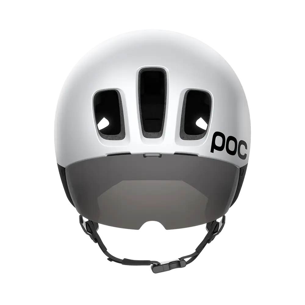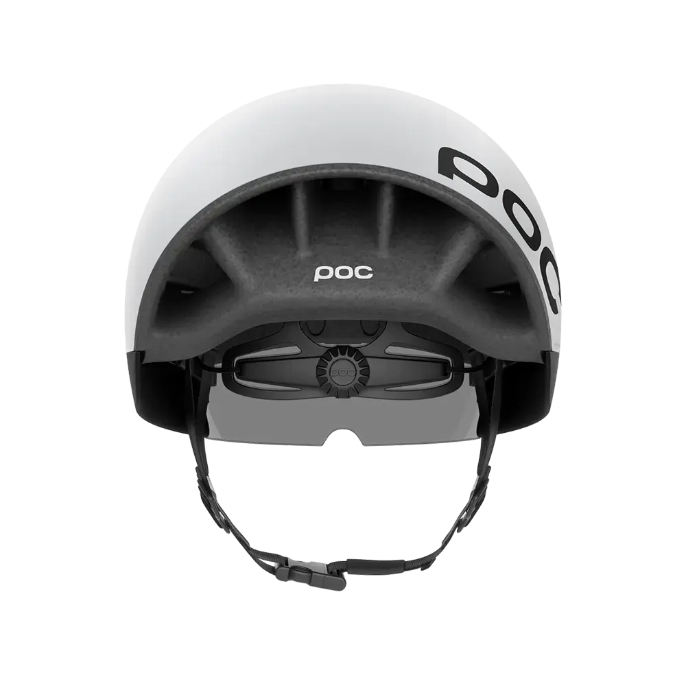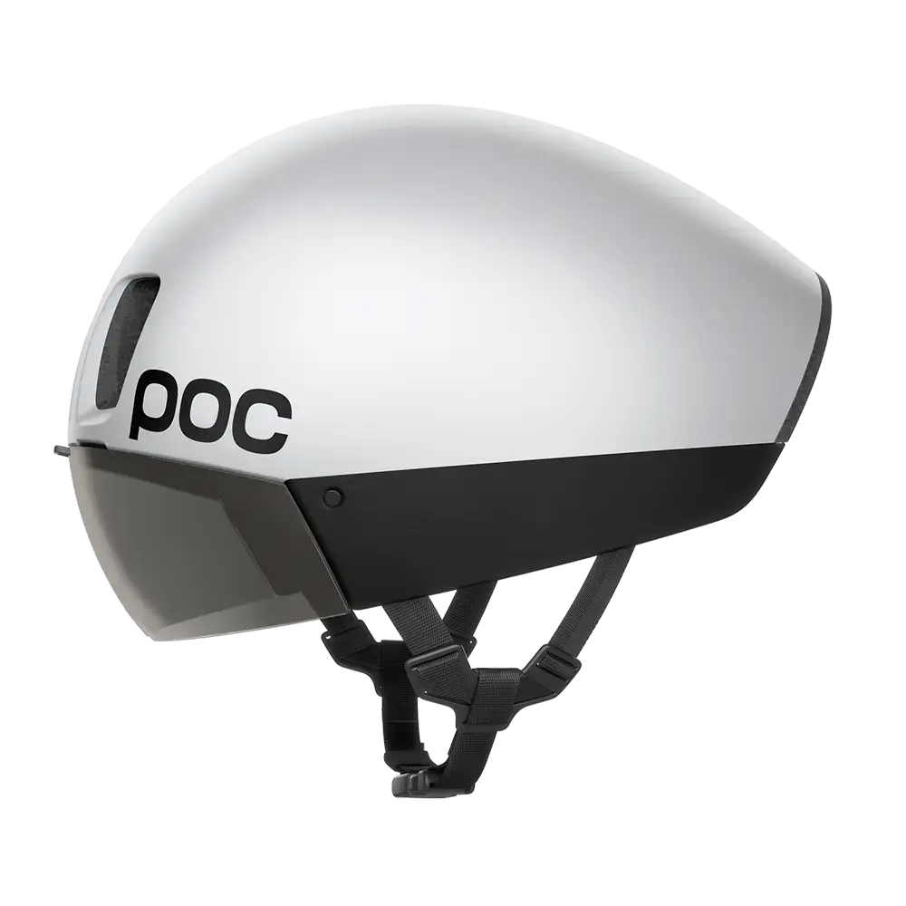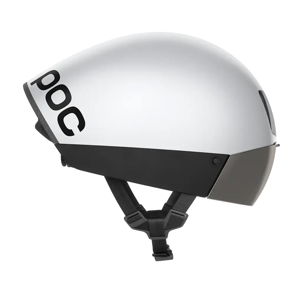 De POC Procen Air Race Fietshelm is speciaal ontworpen voor zeer snelle ritten. Perfect voor tijdritten of een triathlon. Deze helm is speciaal ontworpen om jou niet alleen zo snel mogelijk van A naar B te krijgen, maar dit ook met de benodigde verkoeling. Zo heb je een zo laag mogelijke luchtweerstand, maar kan je ook een maximale prestatie neerzetten. De helm is voorzien van een schokabsorberende ESP liner en heeft geen luchtinlaten op de helm zelf. De extreme vorm is in de CFD simulator ontworpen en getest op de weg. Er zitten geen luchtgaten aan de voorzijde maar wel aan de achterzijde. Hier wordt de vorm ook smaller en gaat de lucht die erlangs gaat sneller. Deze zuigt als het ware de warme lucht uit de helm, zo krijg je toch een optimale verkoeling. Het vizier heeft een speciaal ontwerp, waardoor deze in 2 verschillende posities kan worden geplaatst. De ene positie is bedoeld voor het wachten op de start van de tijdrit, waardoor er lucht langs kan en deze niet zal beslaan. De andere positie zit dichter bij het gezicht voor tijdens het rijden en een minimale luchtweerstand. Het vizier is geheel afneembaar en eenvoudig weer te monteren doordat hij magnetisch is. Dankzij het speciale verstelsysteem zal je altijd de perfecte pasvorm vinden. Met een EVA laag aan de achterzijde in de helm, ervaar je meer comfort bij de nek.
