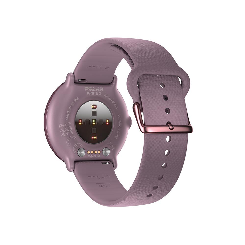Polar Ignite 3 is een hypermodern fitness- & wellnesshorloge in een klassiek jasje. Het horloge is de basis om jouw fysieke én mentale fitness in de gaten te houden. Met dit horloge om je pols krijg je dag en nacht begeleiding die op jouw lichaam en levensstijl is afgestemd. Begin de dag goed dankzij de functies voor slaaptracking en inzicht in je alertheid overdag. Dit helpt je bij het perfectioneren van een bedtijd- of slaaproutine. Ontspan met ademhalingsoefeningen en kom in beweging met op maat gemaakte workoutsuggesties en realtime spraakbegeleiding. Bekijk in een oogopslag gegevens waar je echt wat aan hebt, op een fantastische helder touchscreen met hoge resolutie en widgets die je zelf kunt aanpassen. Dankzij de vele smartwatch functies en optionele pushmeldingen blijf (als je dat wilt) je altijd en overal op de hoogte. Het horloge is gemaakt van een glasvezel versterkt polymeer, RVS ring en een krasbestendig Gorilla Glass 3.0 touchscreen. Het horloge is waterdicht tot 30m en is geschikt om mee te zwemmen. Dit pareltje van Polar is verkrijgbaar in verschillende kleuren en te personaliseren met stijlvolle horlogebandjes van verschillende materialen en in allerlei leuke kleuren.