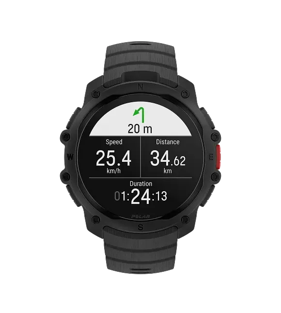 Uitgebreide outdoor-tools: Turn-by-turn navigatie (Komoot), Hill Splitter™ en barometer.