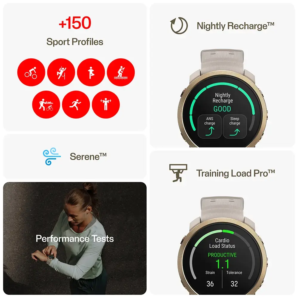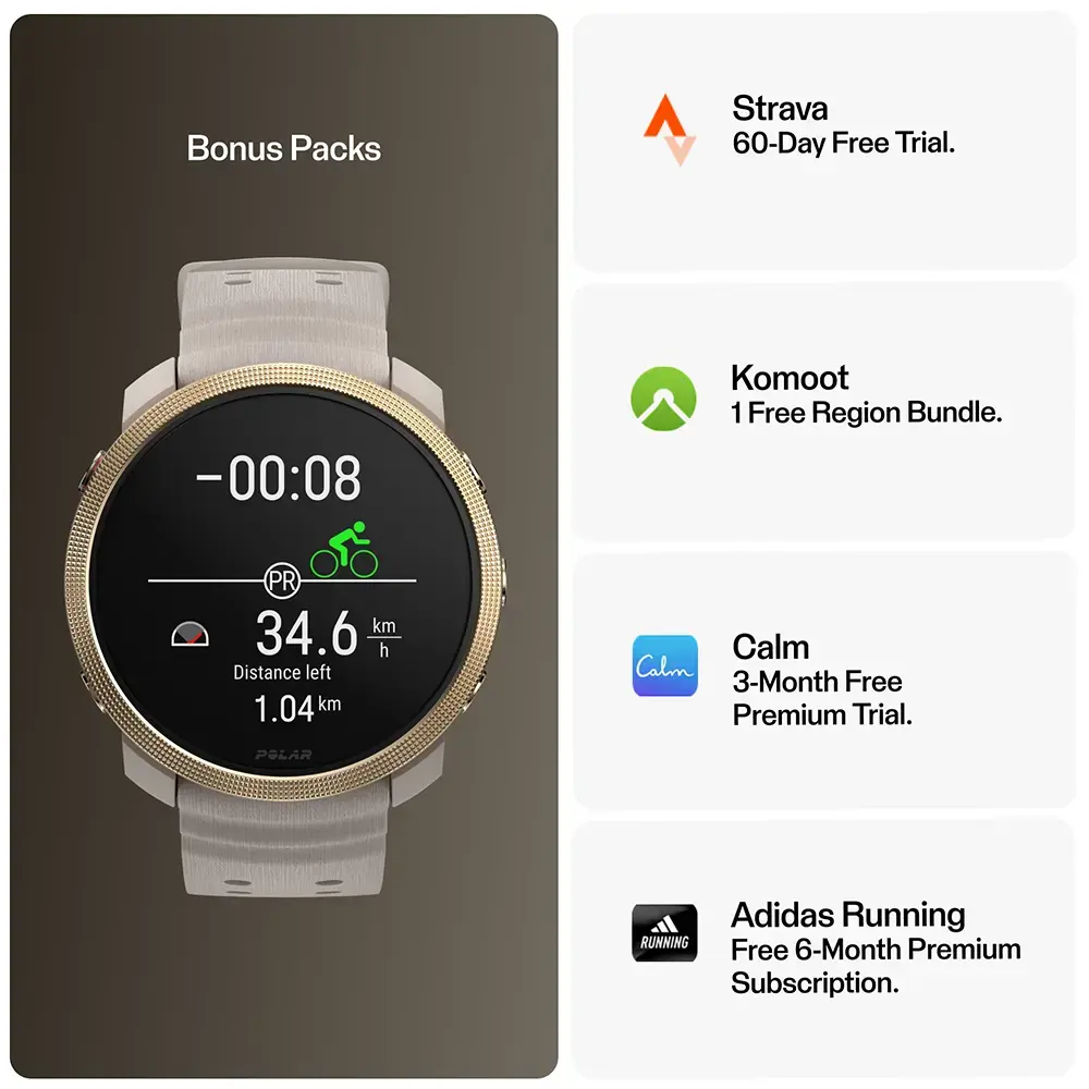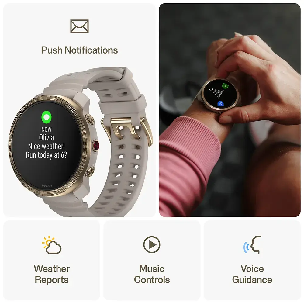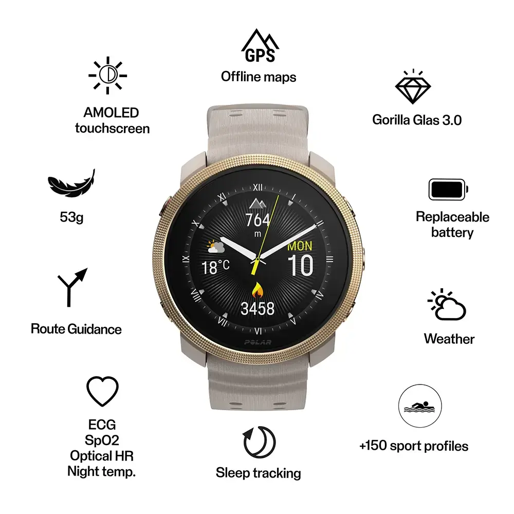 De Polar Vantage M3 is een smartwatch voor atleten die van afwisseling houden. Het combineert de stoere outdoor-serie van Polar met de functionele prestaties van mar liefst 150 verschillende sportprofielen. Dit compacte apparaat zit boordevol persoonlijke training- en coachingtools voor talloze sporten overdag en intuïtieve automatische slaap- en herstelregistratie 's nachts. Dit slanke horloge is ideaal voor zowel dames als heren. Als premium smartwatch is ook de Vantage M3 voorzien van een AMOLED Touchscreen, die extra beschermd wordt door het gebruik van Gorilla Glass 3. De M3 gaat wel 7 dagen mee (in Smartwatch stand) en weegt slechts 53 gram. Je kunt offline navigeren met reeds geïnstalleerde kaarten en hij is ook te koppelen aan de populaire sportnavigatie apps Strava en Komoot.