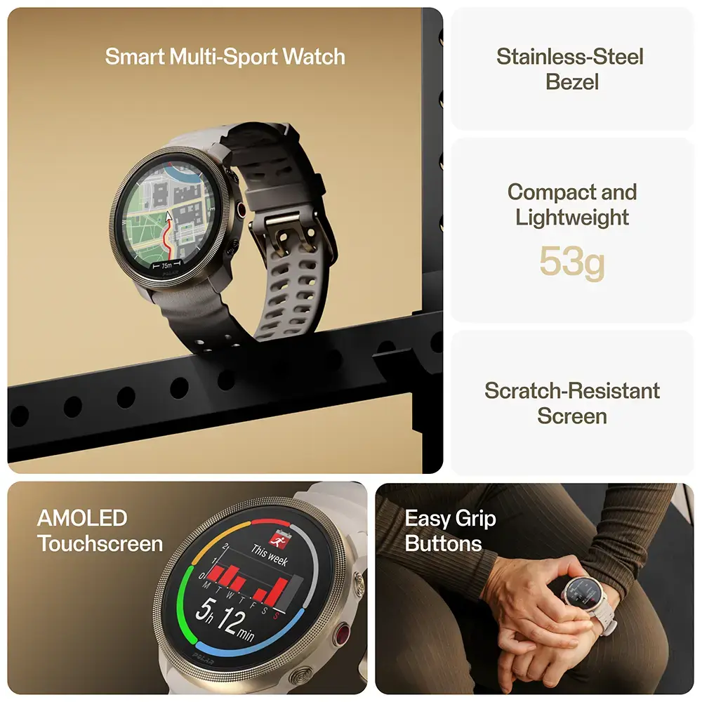 Het horloge oogt wat minder stoer dan bijvoorbeeld de Grit-serie van Polar