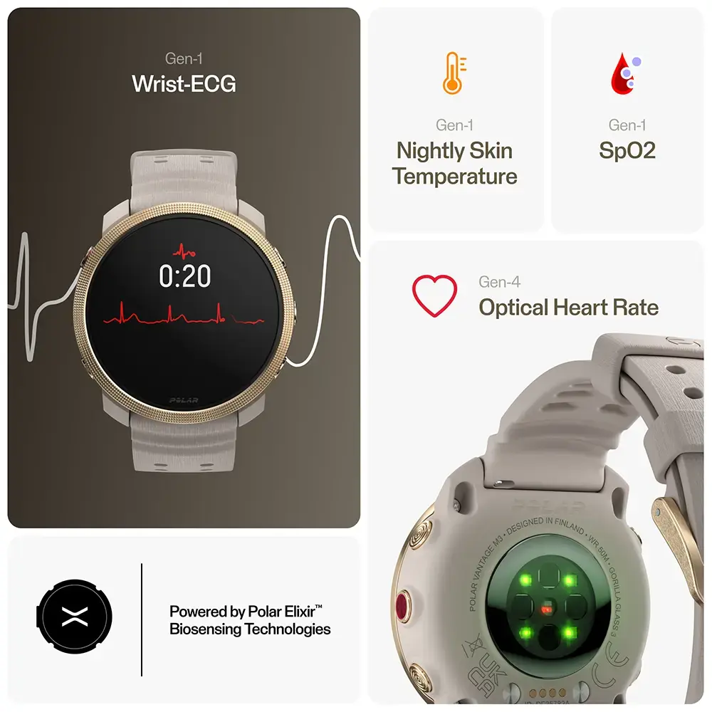 De Biosensors van Polar kunnen 24 uur per dag je hartslagactiviteit, zuurstofsaturatie en huidtemperatuur meten