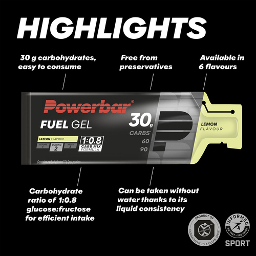 Met de Powerbar Black line Fuel gel vul je jouw energievoorraad tijdens een intensieve inspanning aan. De gel kent een speciale 1:0,8 koolhydratenmix van glucose en fructose wat ervoor zorgt dat je tot 120 g koolhydraten per uur kan opnemen. Het verhogen van de koolhydraatinnames leidt tot verbeterde prestaties tijdens duurinspanningen. Daarnaast draagt deze gel bij aan een verbeterde darmtolerantie. Deze black line Fuel gel is onderdeel van de rest van de Fuel line: gels en sportdranken welke allemaal 30g of 90g koolhydraten per portie bevatten. Ideaal wanneer je snel meer energie nodig hebt. Het toegevoegde natrium zorgt voor een licht dorstgevoel waardoor je ook tijdens de inspanning blijft drinken en helpt daarnaast met de opname van de koolhydraten en vult verloren zouten via het zweet snel weer aan.