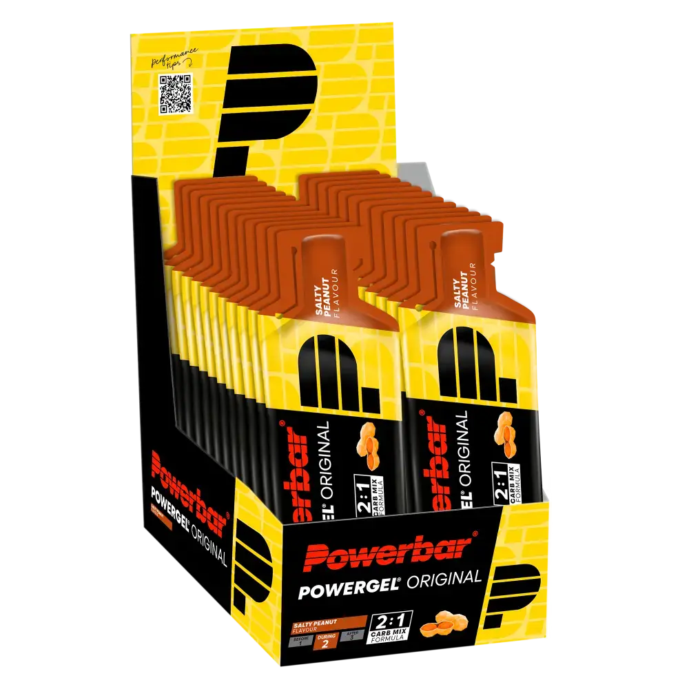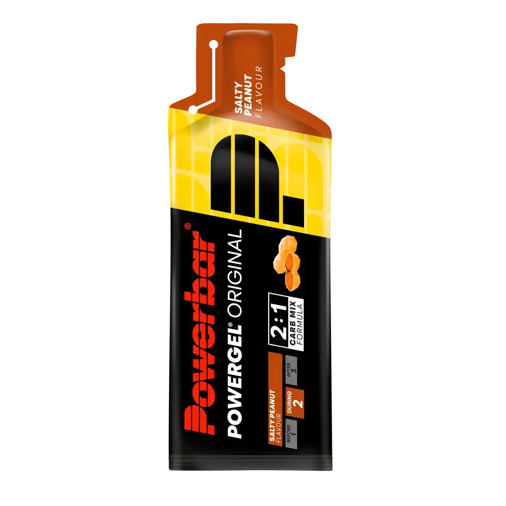 Met de PowerBar PowerGel Salty Peanut vul je jouw energievoorraad ook tijdens een intensieve inspanning aan. De gel kent een speciale koolhydratenmix van glucose en fructose wat zorgt voor extra energie. De gel is in te nemen met zo’n 150 ml water en is goed verteerbaar. Ideaal voor sporters die tijdens de inspanning nog meer uit hun prestaties willen halen, bijvoorbeeld om in het laatste uur nog even te knallen. In deze gel zit een extra hoog natriumgehalte die de vochtinname stimuleert en de opname van vocht verbeterd.