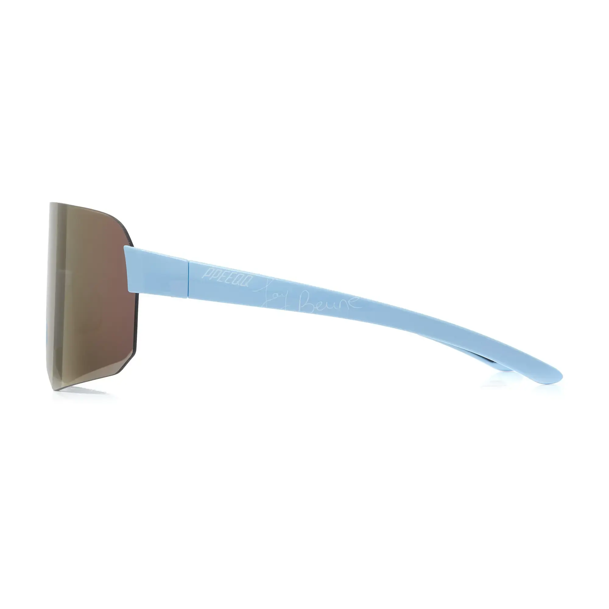 De PPEEQQ Model III is ontworpen voor sporters die gaan voor een minimalistisch design en maximale prestaties. Door het montuurloze ontwerp waarbij de pootjes direct op de lens bevestigd zijn, oogt deze bril extra modern en voelt hij extreem licht aan. De lens is compacter dan bij de andere modellen, maar biedt nog steeds een uitstekend breed zichtveld. De spiegelende gouden lens is perfect geschikt voor zonnige omstandigheden en biedt optimale bescherming tegen fel licht. De bril draagt zeer comfortabel door het lage gewicht, de verstelbare antibacteriële neusvleugels en de pootjes die afgeleid zijn van het Model II ontwerp. PPEEQQ is dan ook niet voor niets de keuze van Laurens ten Dam. In de fraaie brillenkoker kun je de bril veilig bewaren of goed beschermd meenemen.