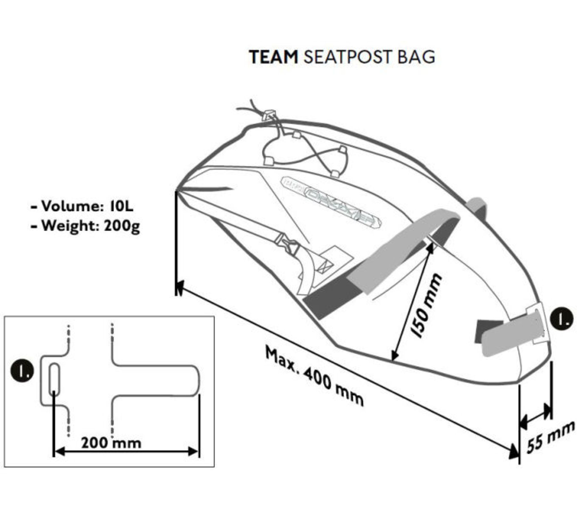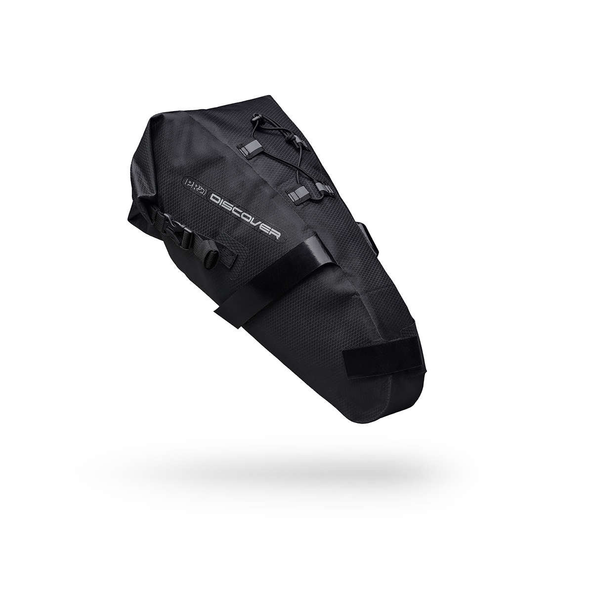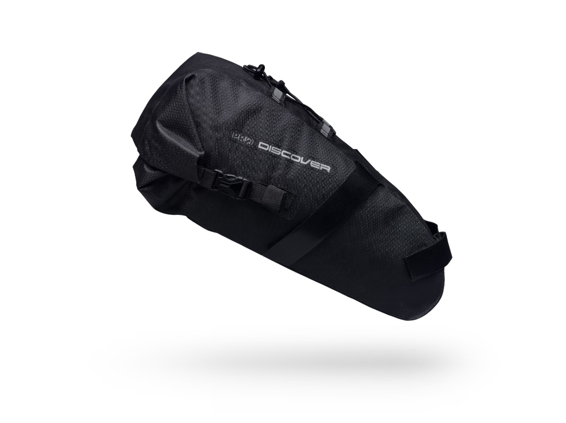 De Gravel Team zadeltas van Pro biedt je maar liefst 10 liter aan opbergruimte en kan netjes onder je zadel worden weggewerkt, bevestigt aan de zadelpen. De bevestiging is simpel met klittenbandsluitingen. De gelaste naden in deze waterdichte zadeltas laten geen water binnen. Daardoor kun je veilig je materialen en accessoires opbergen. Met 201 gram en een anti-zwaai constructies merk je zelfs op de ruigste terreinen nauwelijks dat de tas onder je zadel bevestigd is. Voor de bikepacker die graag ’s ochtends al vroeg vertrekt of ’s avonds nog lang doorfietst, zijn er reflecterende details aangebracht zodat je op die momenten nog wat beter zichtbaar bent.