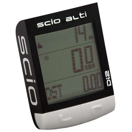 De Pro Scio fietscomputer beschikt over een hoogtemeter met diverse functies en een groot scherm met twee knoppen.