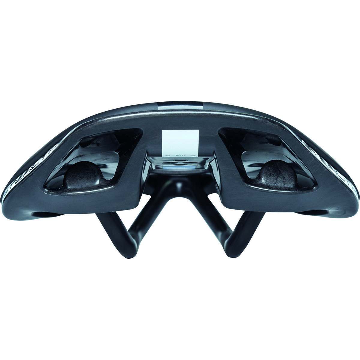 goed en aangenaam zadel doch de schelp is niet van carbon doch van gehard nylon waardoor deze niet zo stevig is en na intensief gebruik barst.