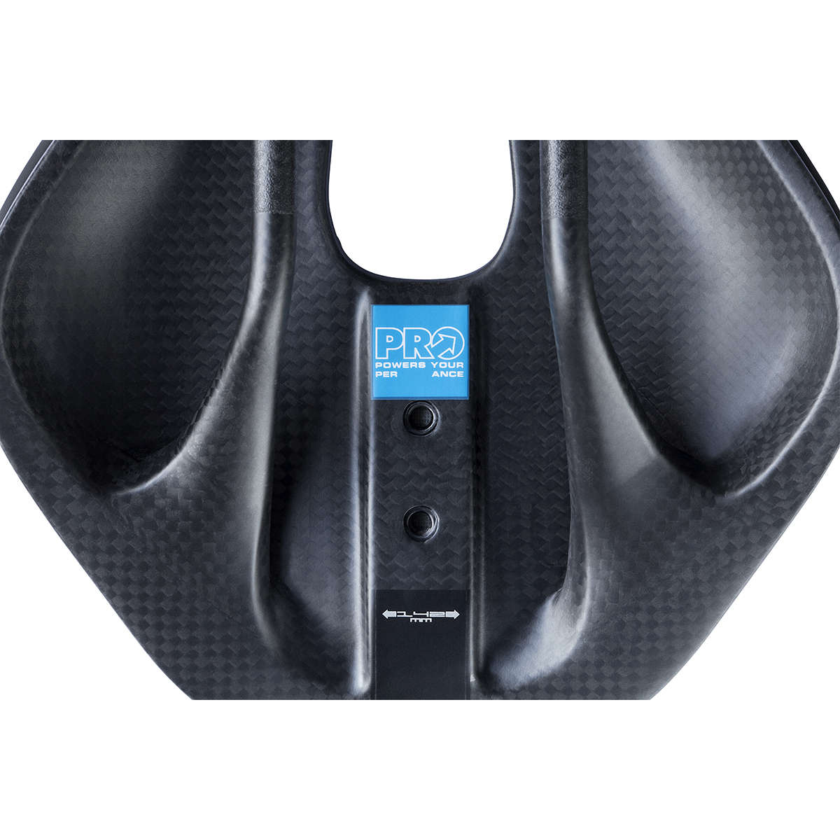 Het PRO Stealth Superlight zadel doet zijn naam eer aan, want weegt slechts 145 gram! De schaal van het zadel is volledig van carbon met daar overheen het lichte EVA-padding materiaal. Dit zorgt voor een ‘superlight’ zadel dat toch comfort biedt. Het zadel is met de hand gemaakt en over de hele lengte breder dan de meeste traditionele zadels, wat extra ondersteuning geeft. Dankzij de grote opening in het zadel wordt de druk om het midden van het zitvlak weg te nemen.