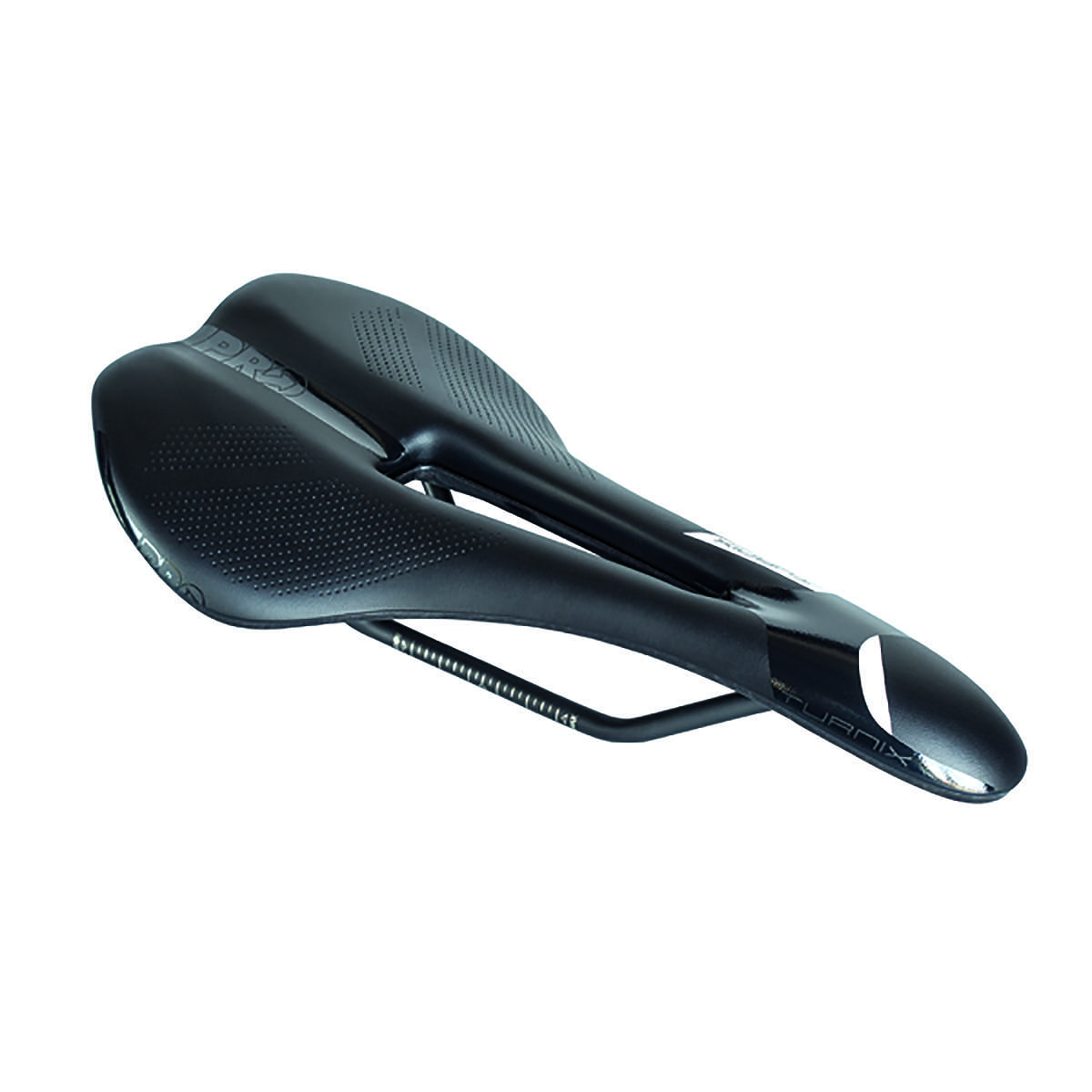 Het Pro Turnix Flow Zadel is zeer gestroomlijnd en heeft een hoog zitcomfort dankzij zijn wave vorm. De achterzijde van dit zadel is verhoogd waardoor je automatisch iets naar voren hangt. Het zadel heeft heeft zijn kenmerkende spitse punt en verder is deze voorzien van een stevig EVA schuim wat hem een goed schokabsorberend vermogen geeft. Het zadel is afgewerkt met hoogwaardig PU-leer. Deze Flow variant is voorzien van Pro’s Air Flow ventilatie opening in het midden van het zadel.