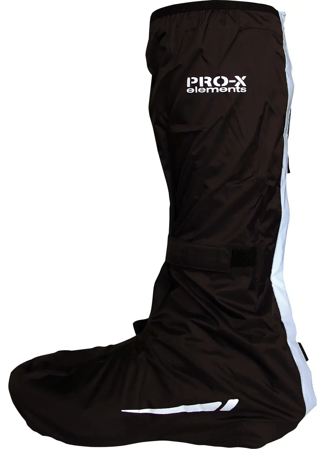 Deze overschoenen van Pro X Elements zijn gemaakt van XPLUS-materiaal. Aan- en uittrekken gaat heel makkelijk dankzij de open achterzijde. Door de hoogte van de overschoenen worden ook je schenen beschermd. Betere zichtbaarheid in het verkeer is te danken aan enkele reflecterende strips. Verstelbare tailleband, riempje en zoolrand. Ook geschikt voor klikpedalen.