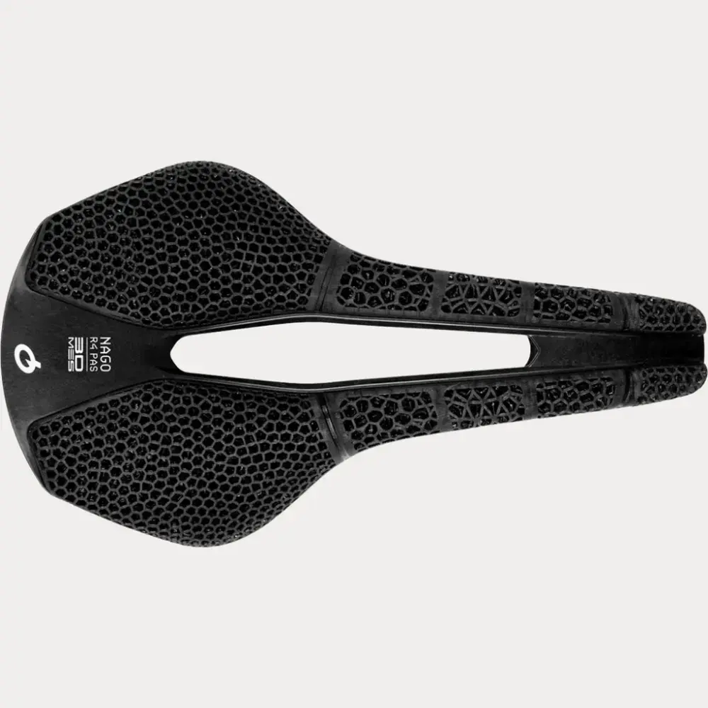 De T-vorm van het zadel zorgt voor meer bewegingsvrijheid dankzij een breder zitvlak. Het verdiepte anatomische centrum maakt het voor de wielrenner gemakkelijk om van positie te veranderen en de volledige lengte van het zadel te benutten. De semi-ronde anatomische vorm van de Nago R4 PAS 3D MSS biedt een uitstekende balans tussen ondersteuning en bewegingsvrijheid.
