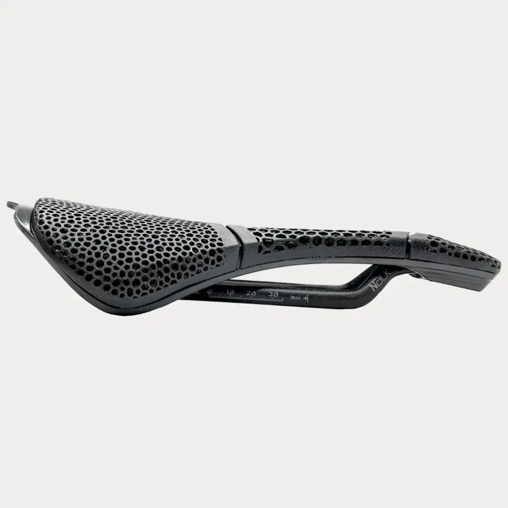 De basis van het zadel is gemaakt van langvezelige koolstof en de Nack rails (nano koolstofvezel) maken het zadel lichter, stijver en efficiënter.