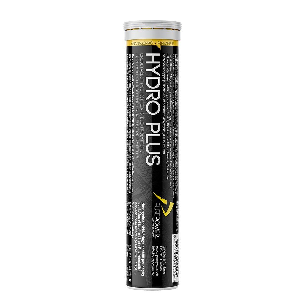 PurePower HYDRO bruistabletten houden de lichaamsvochtbalans in stand, verminderen de kans op kramp en ondersteunen een normaal energiemetabolisme. Dit vanwege de rijke toevoeging van vitaminen, mineralen en elektrolyten. HYDRO bruistabletten geven een lekkere, frisse smaak en zijn eenvoudig mee te nemen zodat je ook onderweg je energiedrankje aan kan maken. Aan deze Hydro Plus variant is extra caffeïne toegevoegd voor een betere alertheid.