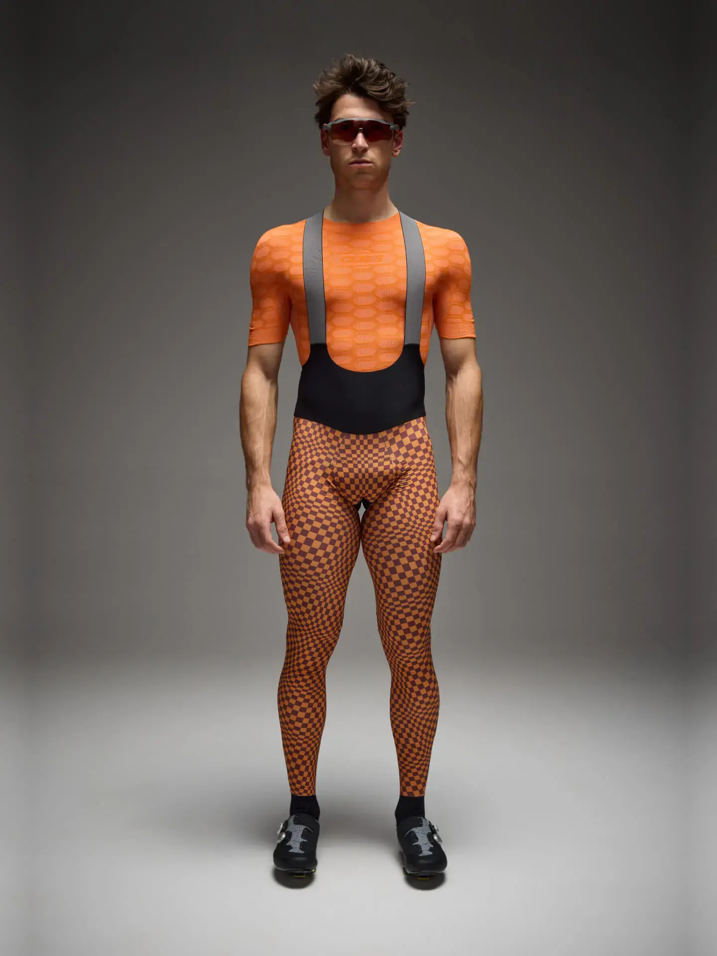 Q36.5 Dottore Hybrid Fietsbroek Lang Met Bretels en Zeem Check Oranje Heren