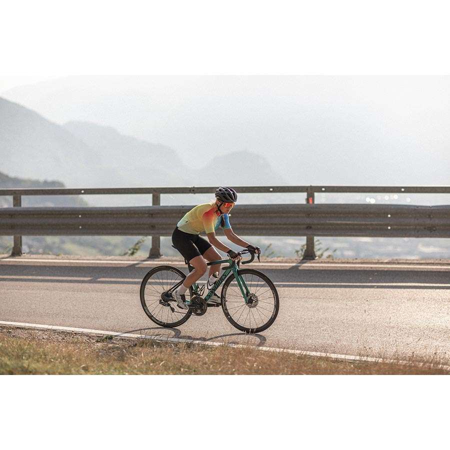 Het Q36.5 G1 Good Vibes fietsshirt zorgt dankzij het unieke ontwerp dat je zeker zult opvallen tijdens je fietsrit! Het shirt is gemaakt van twee verschillende stoffen die samen zorgen voor een zeer hoog ademend vermogen. De mouwen en schouders zijn gemaakt van een dun, micro-geperforeerd materiaal en de voor- en achterzijde van het shirt van een dubbel micro-polyester. Die materialen zorgen er samen voor dat zweet snel kan worden opgenomen door het shirt en vervolgens kunnen verdampen. Waar veel shirts de zakken op de achterzijde genaaid hebben, zitten die hier aan de binnenkant van het shirt. Hierdoor blijven je spullen steviger in het shirt zitten en dit geeft een aerodynamisch voordeel. De stof zelf is zeer slijtvast en sluit perfect aan om het lichaam.